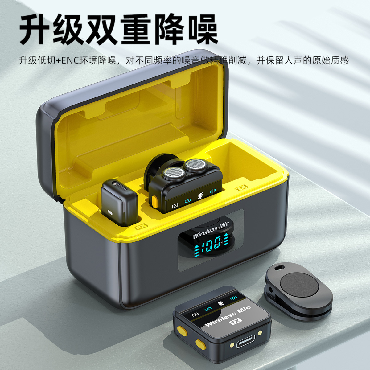 New Private Model Wireless Lavalier Microphone One to Two with Display Live Video Intelligent Noise Reduction Magnetic Microphone