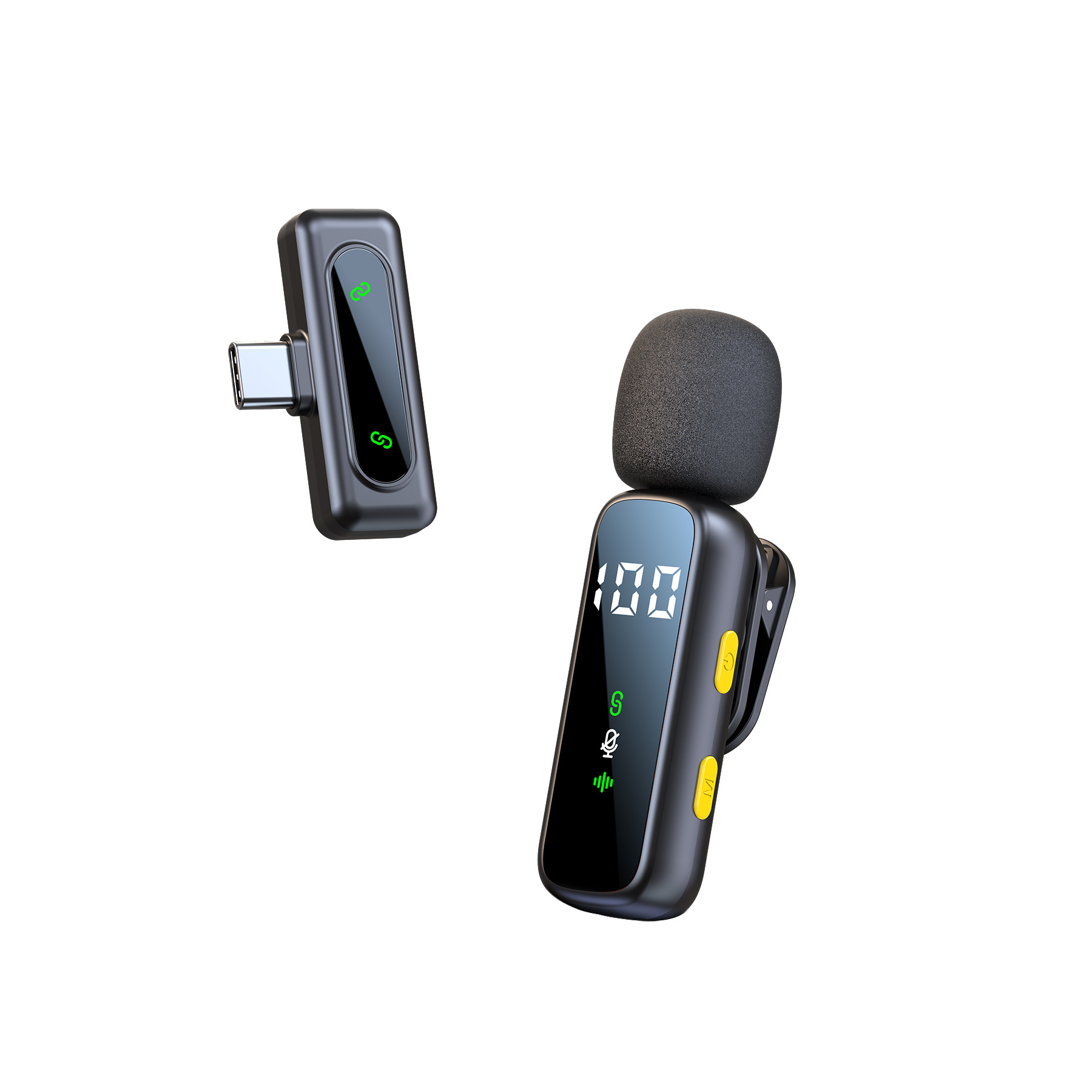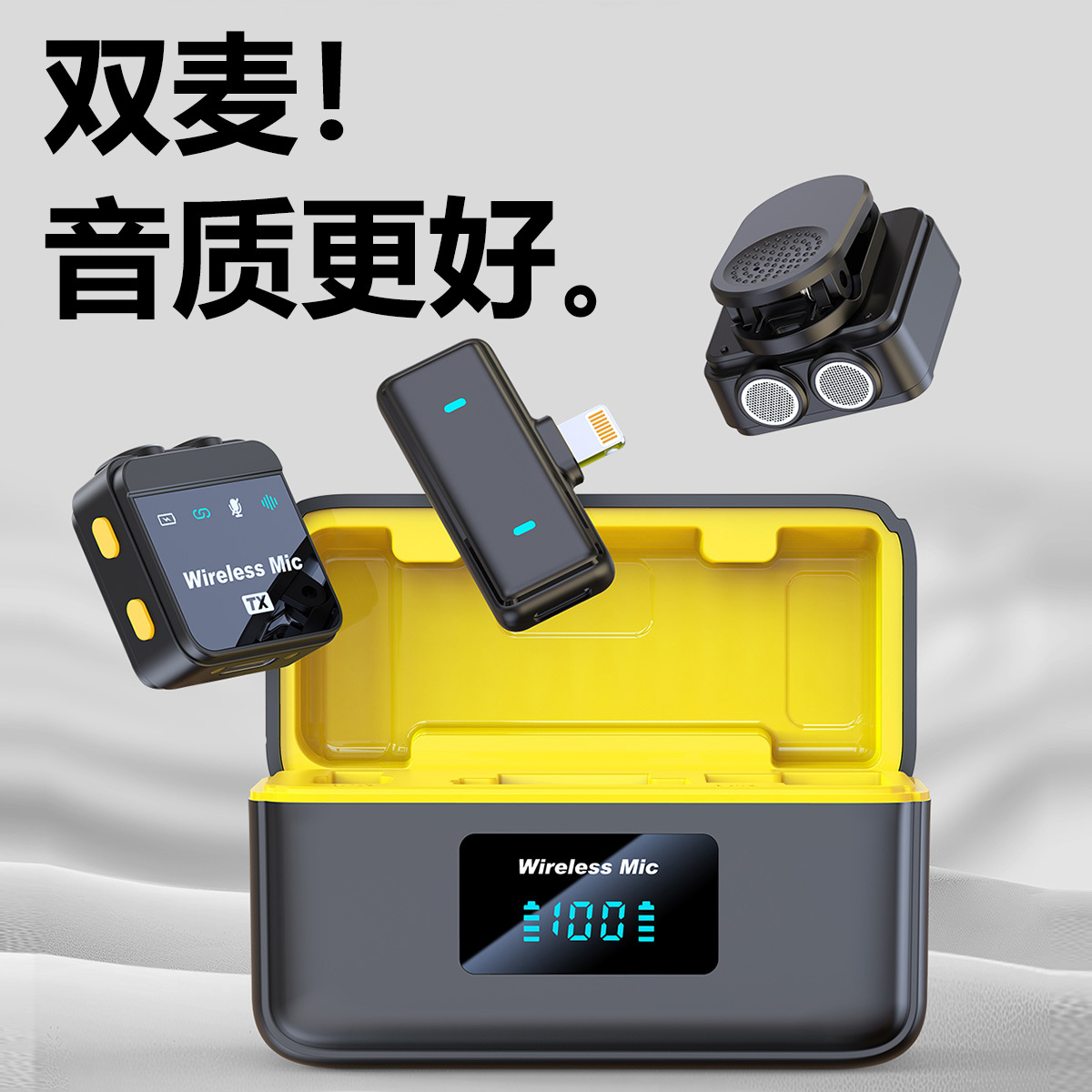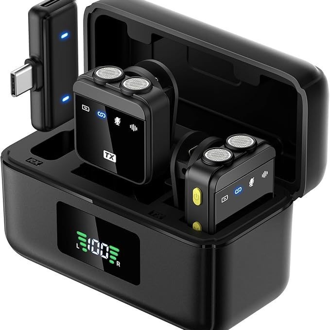 (FREE SEA SHIPPING) New Private Model Wireless Lavalier Microphone One to Two with Display Live Video Intelligent Noise Reduction Magnetic Microphone