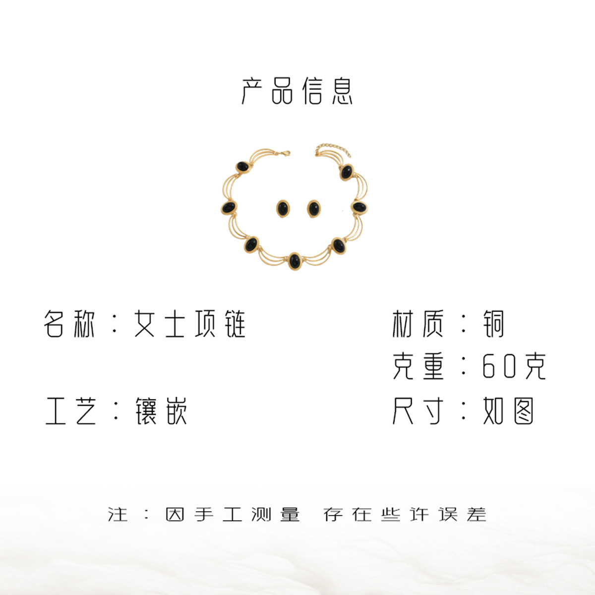 Palace style women's earrings and necklace set retro inlaid gemstone design high-end clavicle chain for women