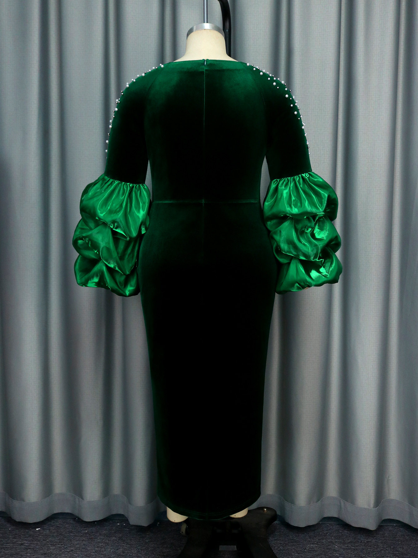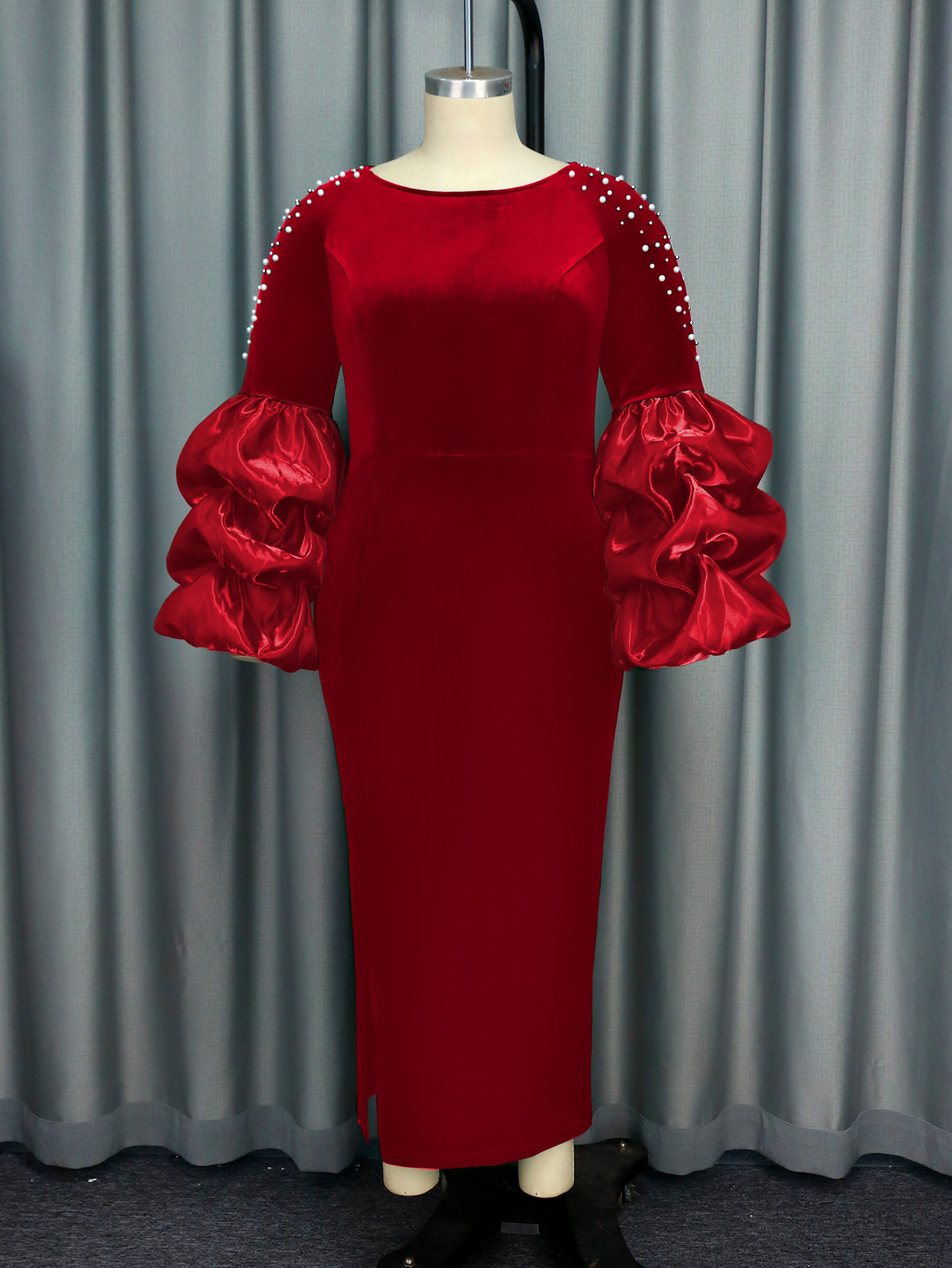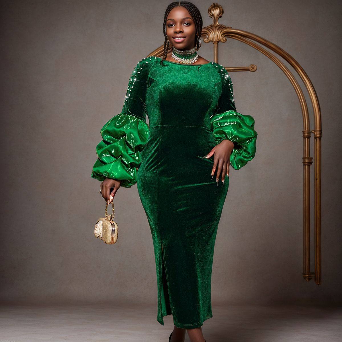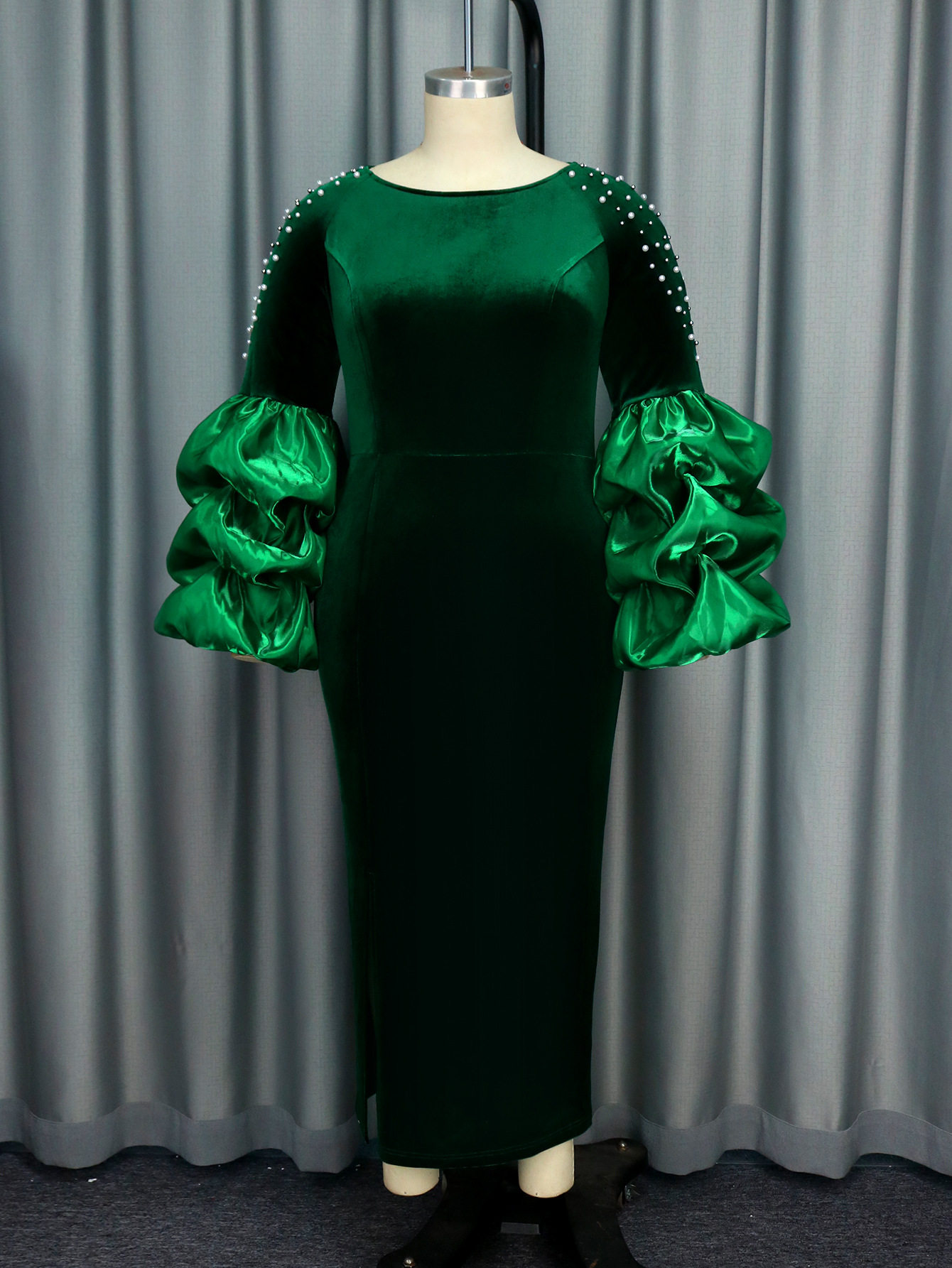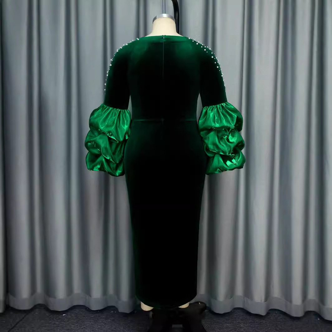 (FREE AIR SHIPPING) Personalized design piled sleeves beaded dress high waist party evening dress Party dress