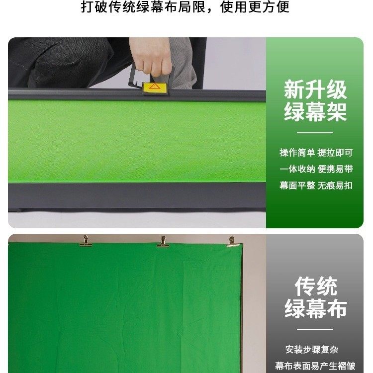Portable liftable pull green curtain studio green keying background wall video special effects background green cloth