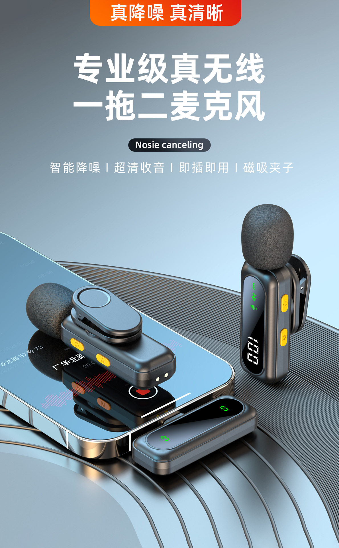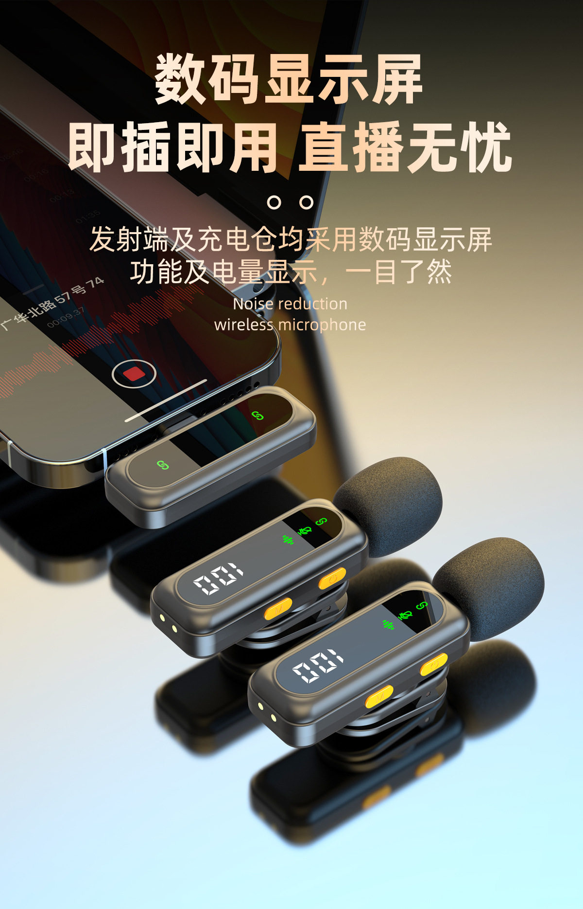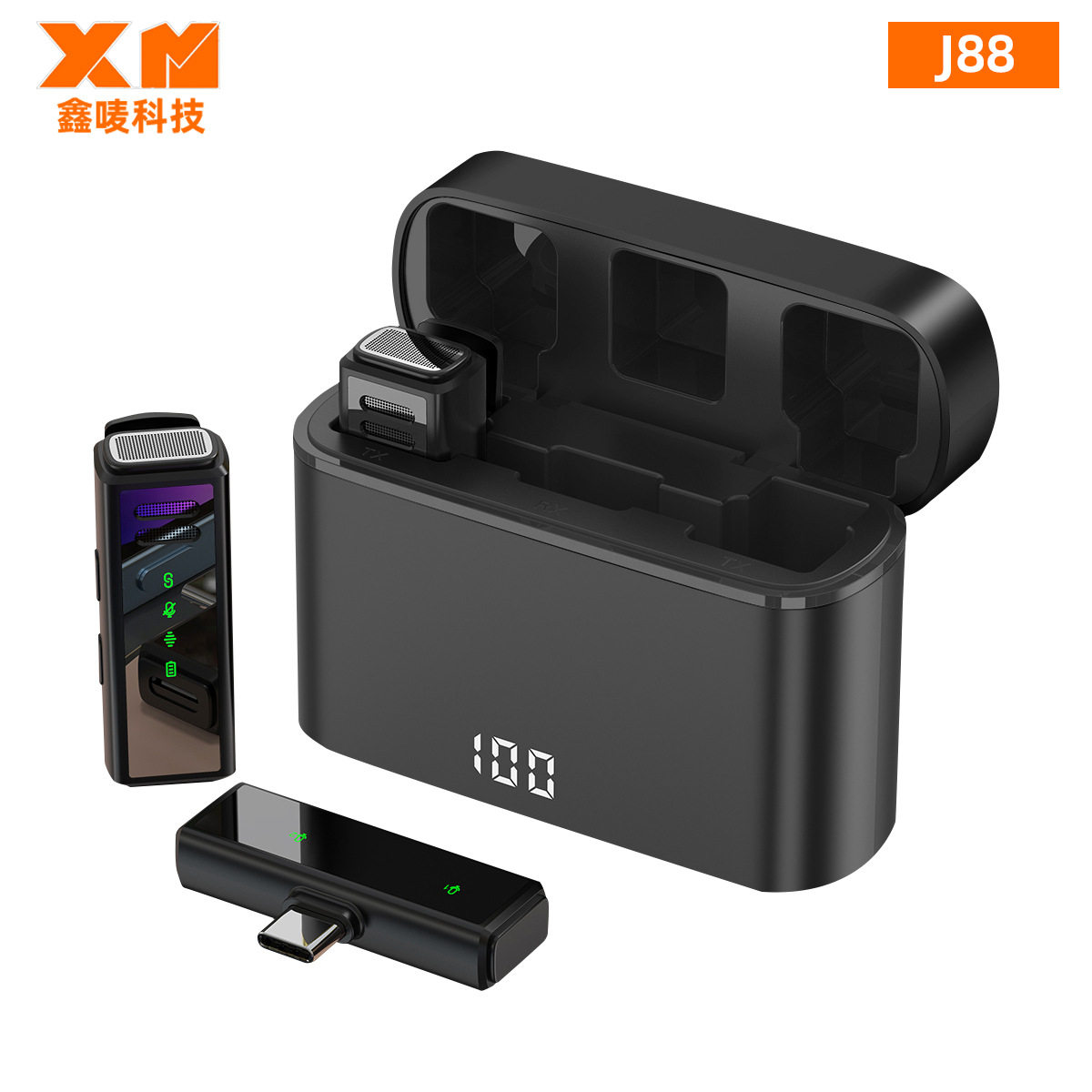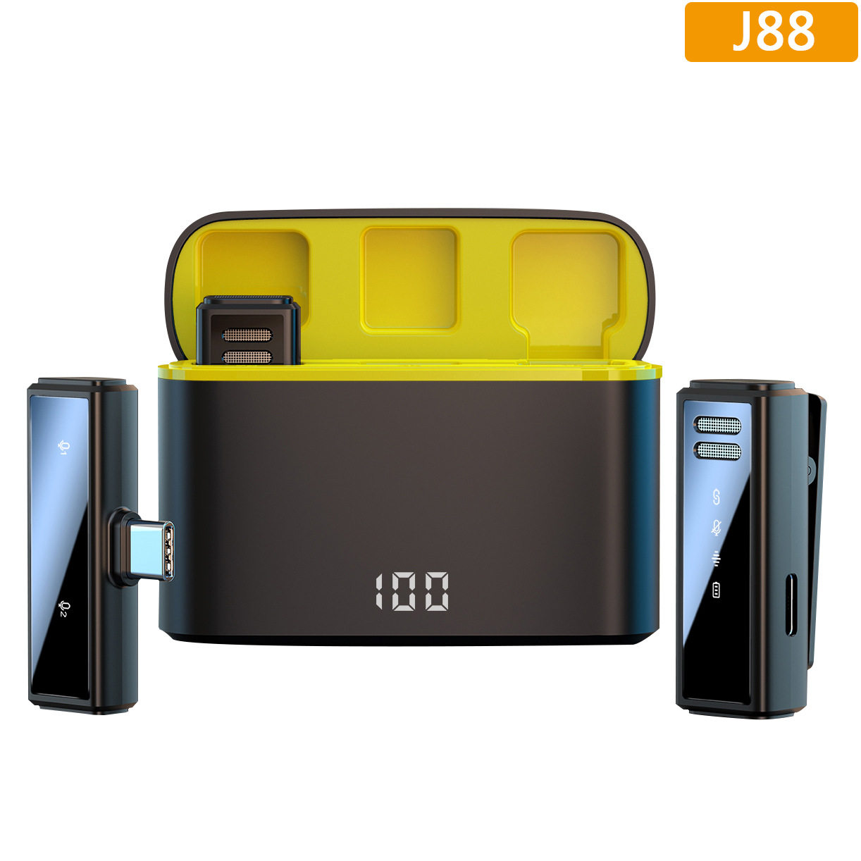 (FREE SEA SHIPPING) private model J88 live noise reduction video shooting mini microphone charging warehouse digital display wireless collar clip microphone
