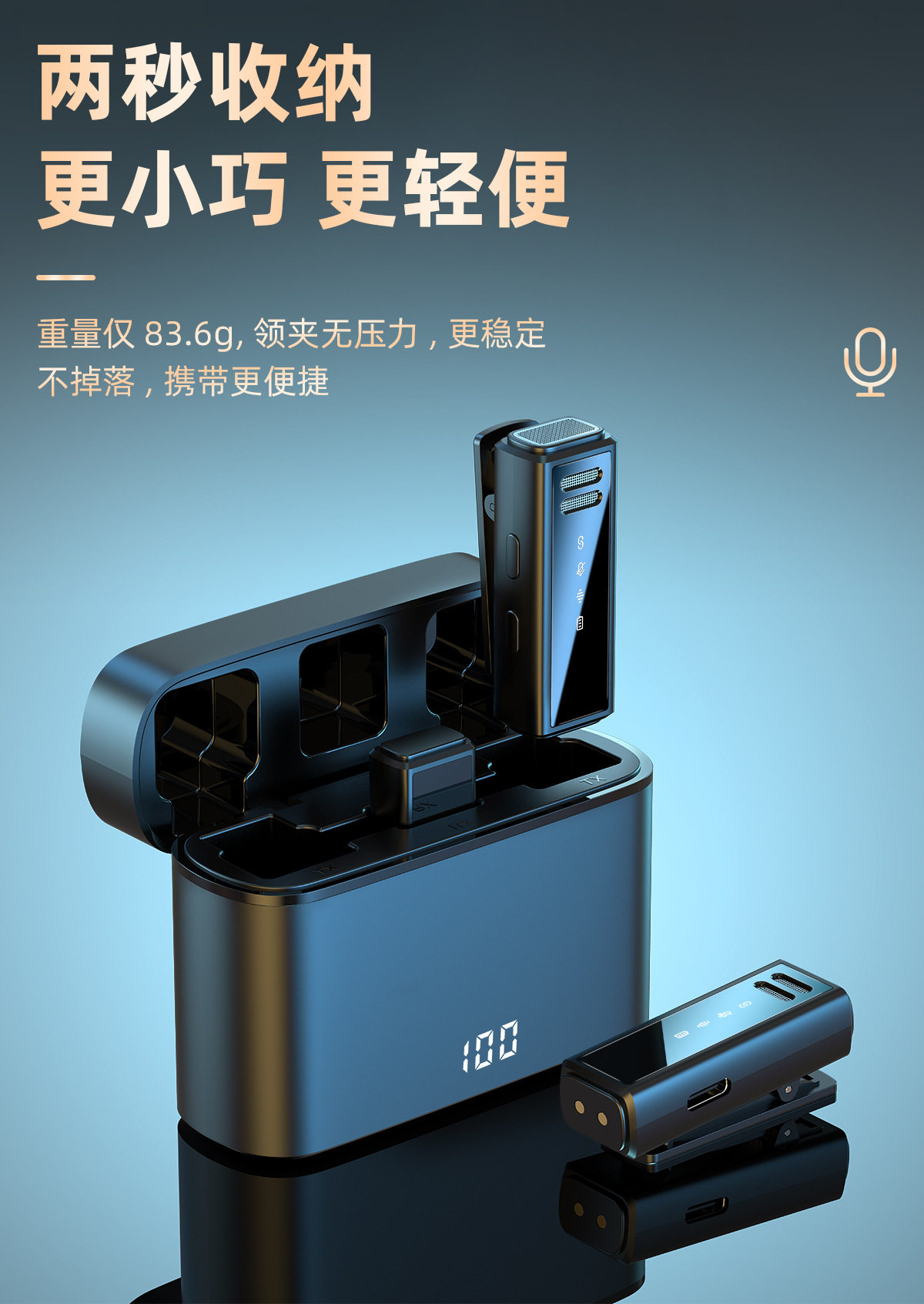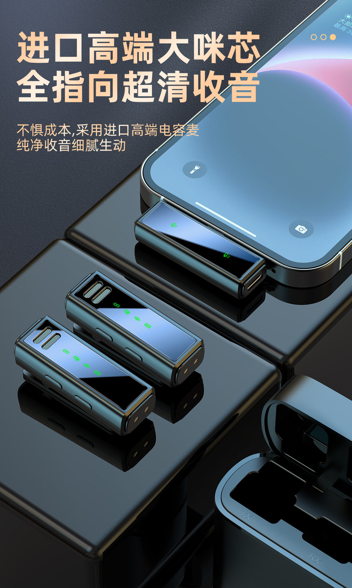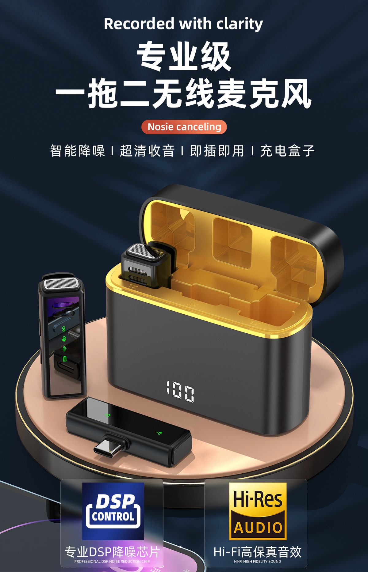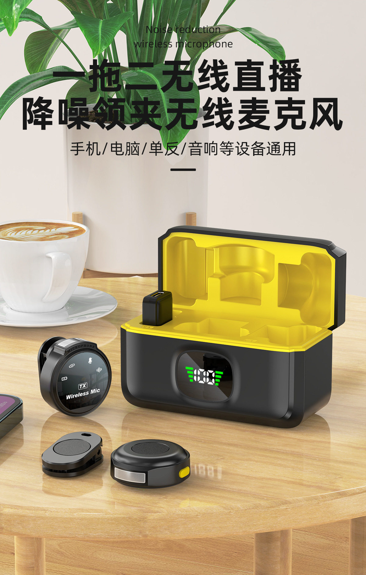 (FREE SEA SHIPPING) private model J88 live noise reduction video shooting mini microphone charging warehouse digital display wireless collar clip microphone