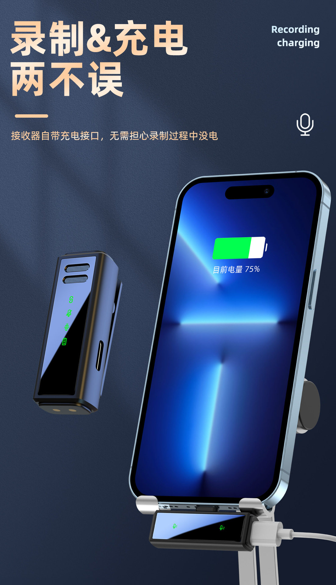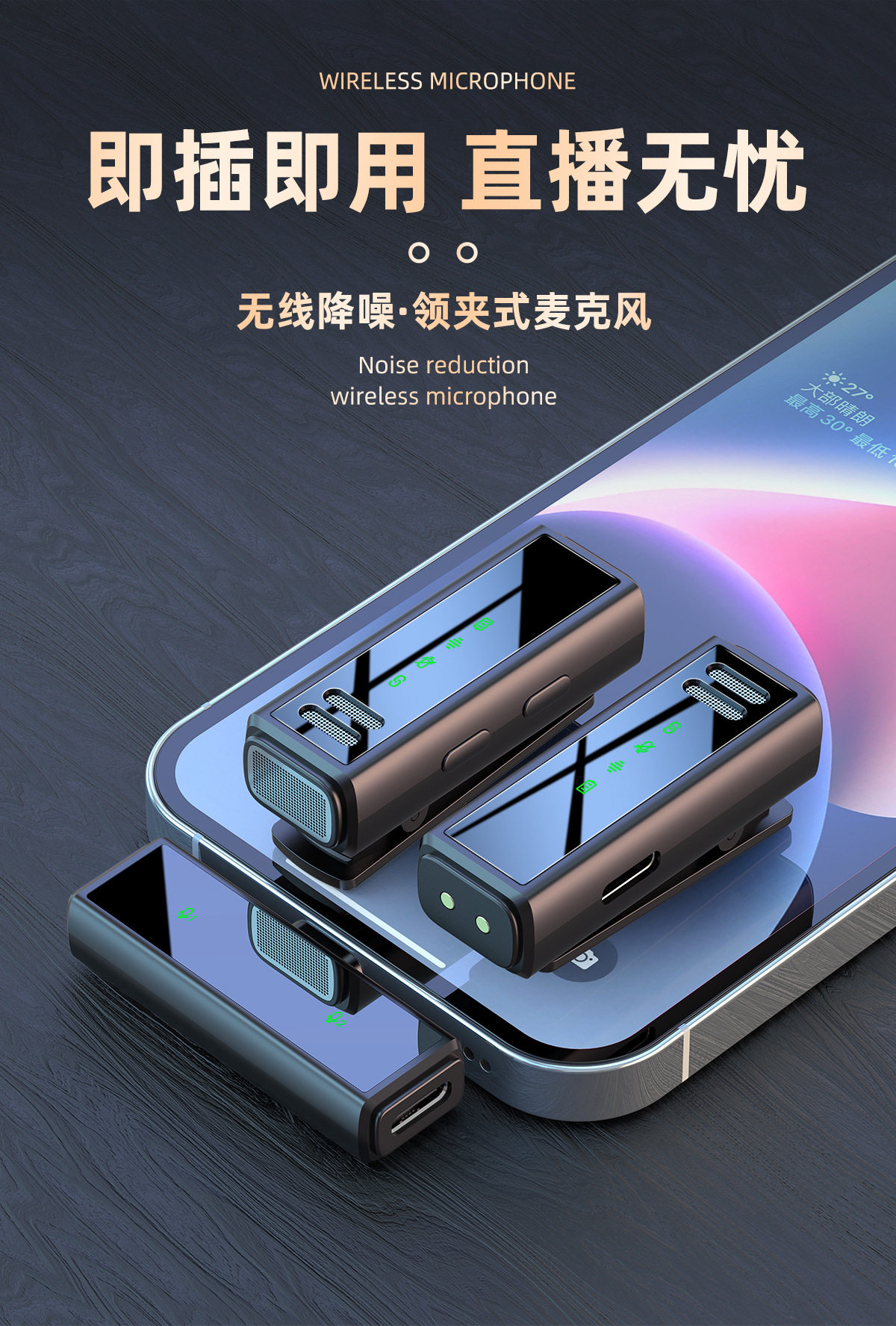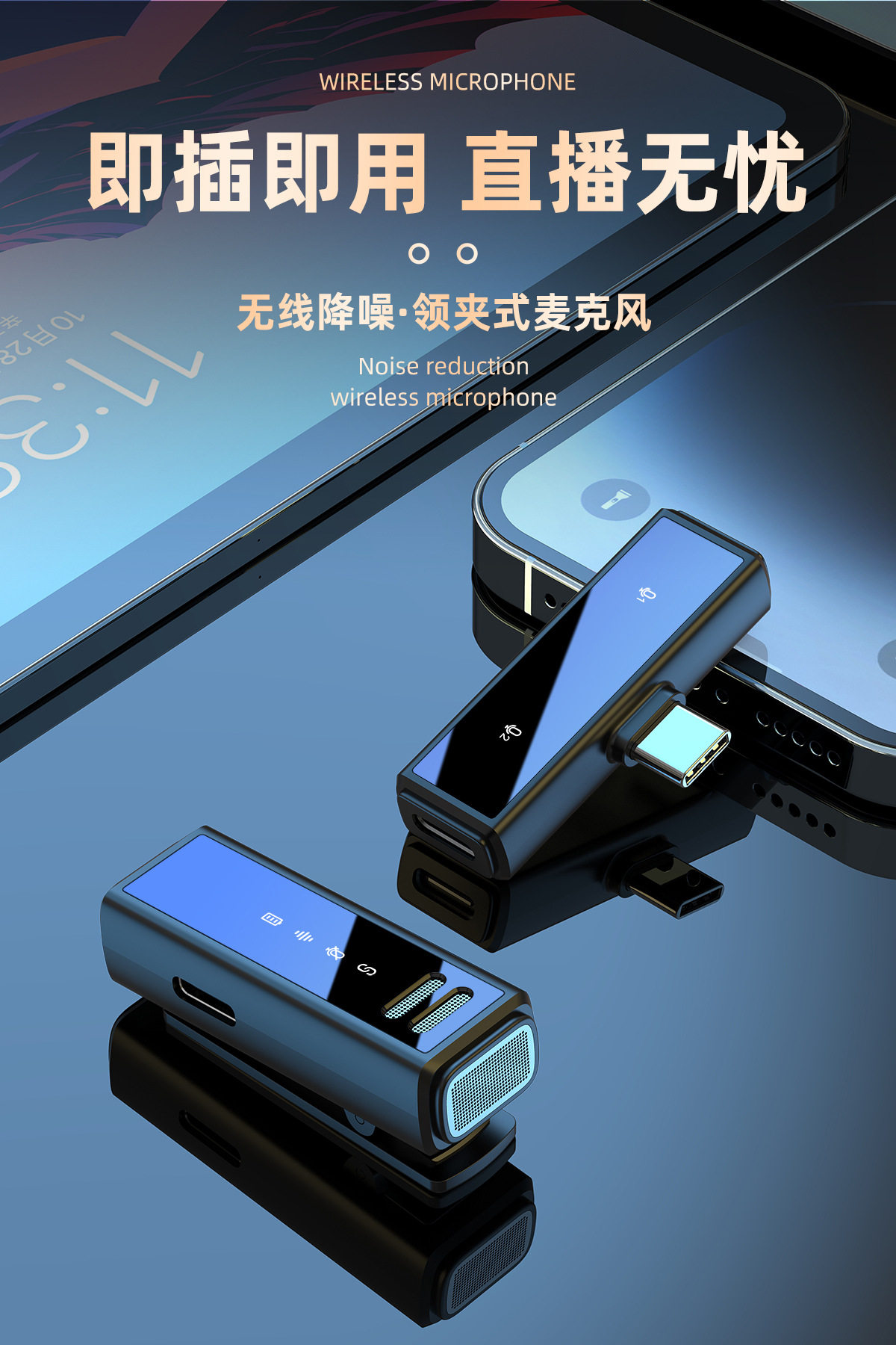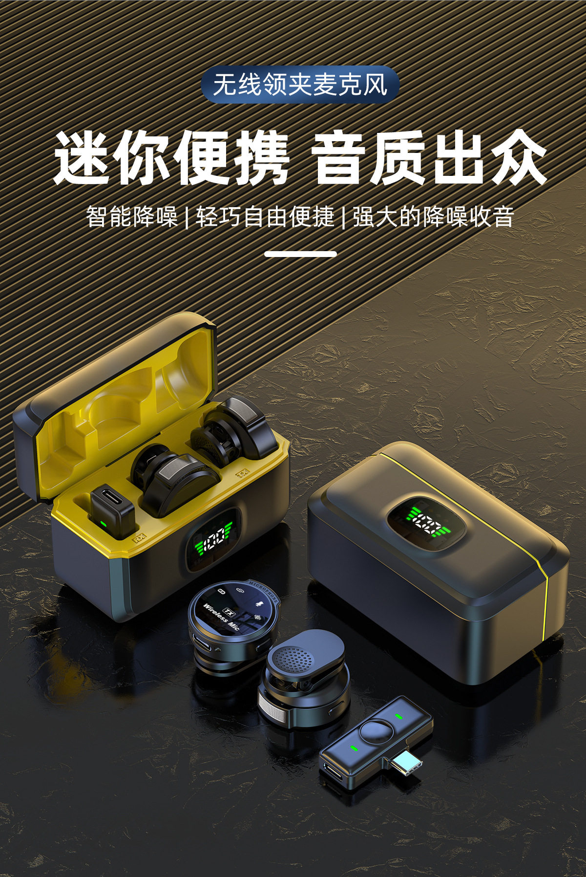 (FREE SEA SHIPPING) private model J88 live noise reduction video shooting mini microphone charging warehouse digital display wireless collar clip microphone