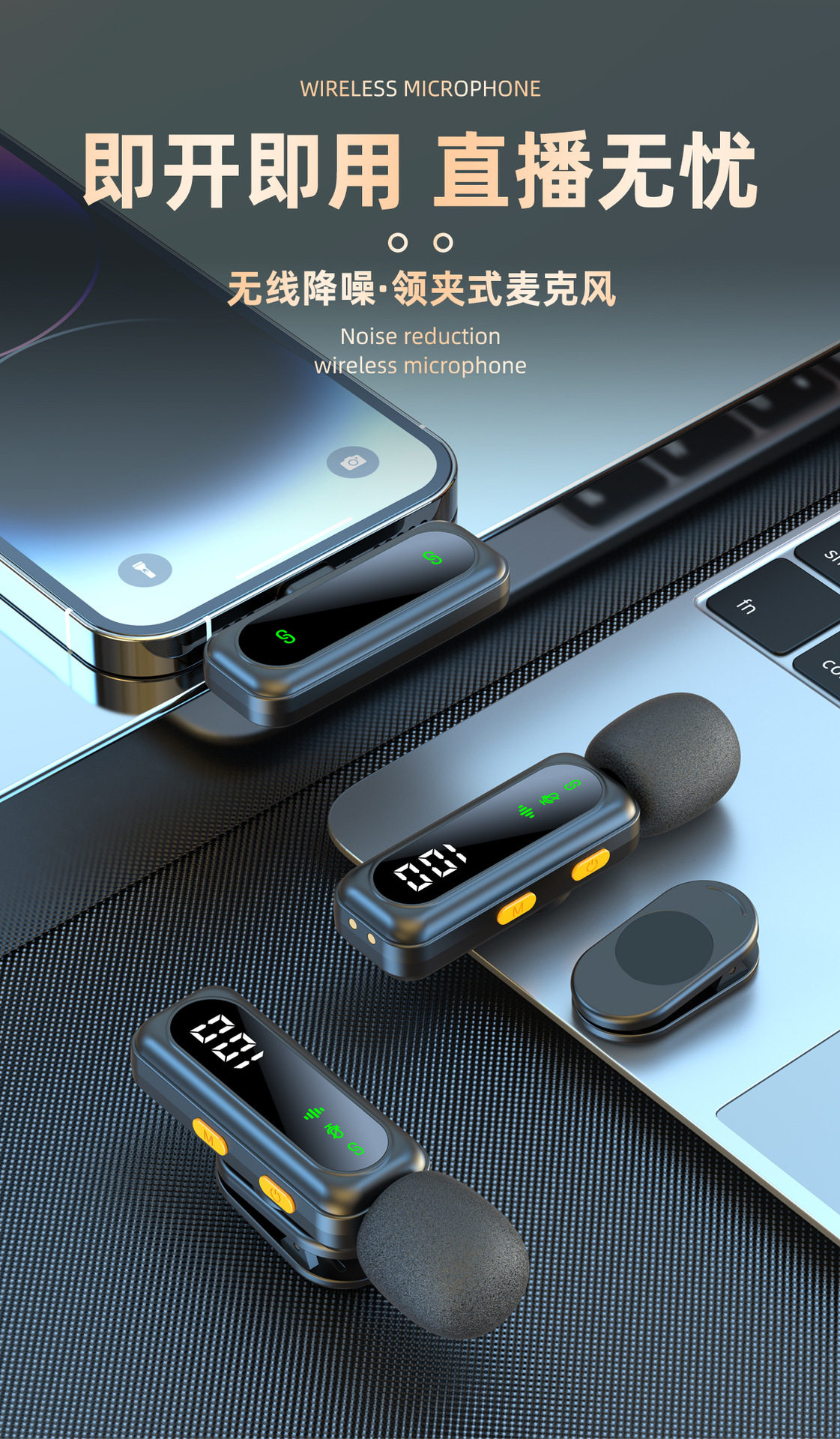 Private model J88 live noise reduction video shooting mini microphone charging warehouse digital display wireless collar clip microphone