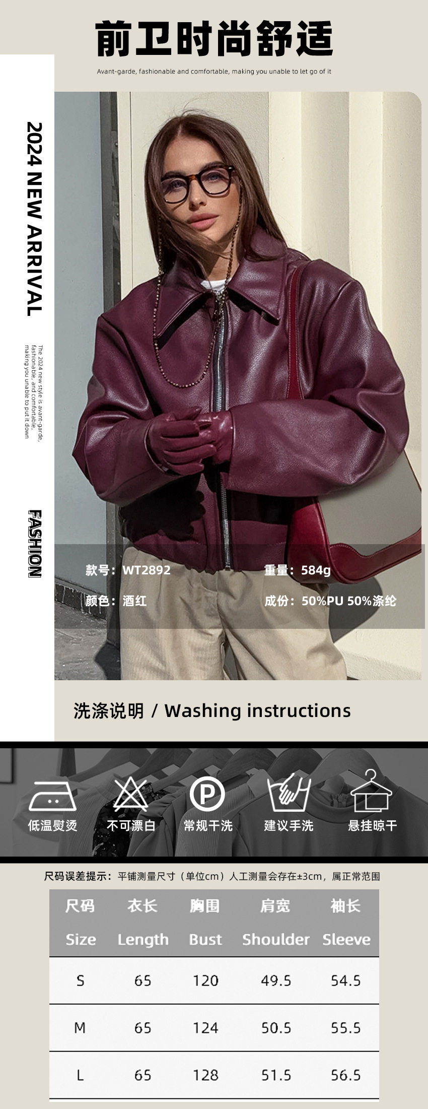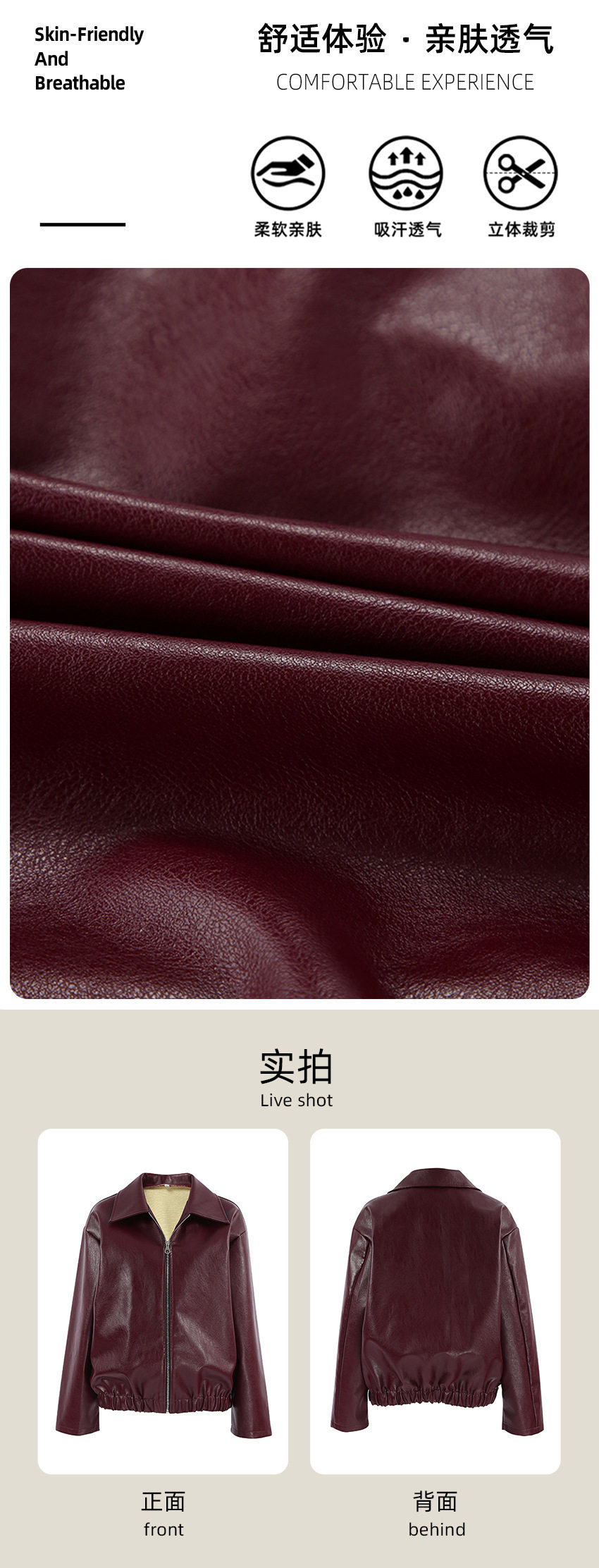 Retro motorcycle style burgundy leather jacket for women fashionable matte leather jacket