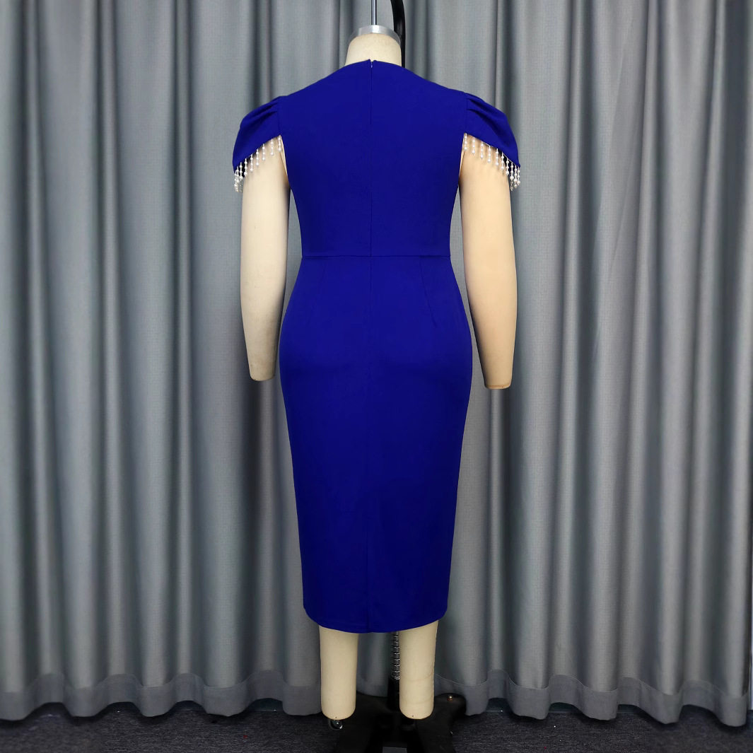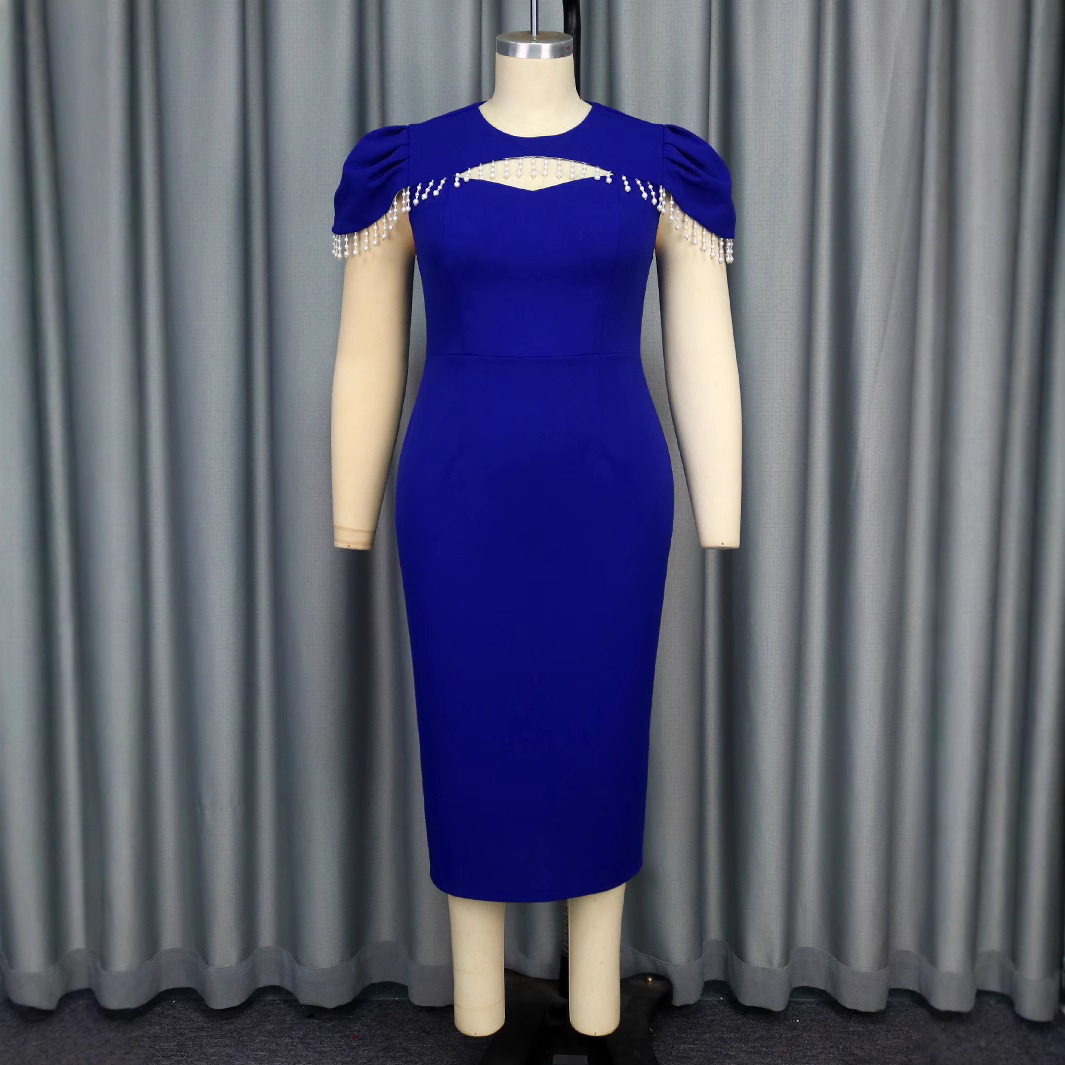 Round neck beaded dress party hollow hip graduation dress