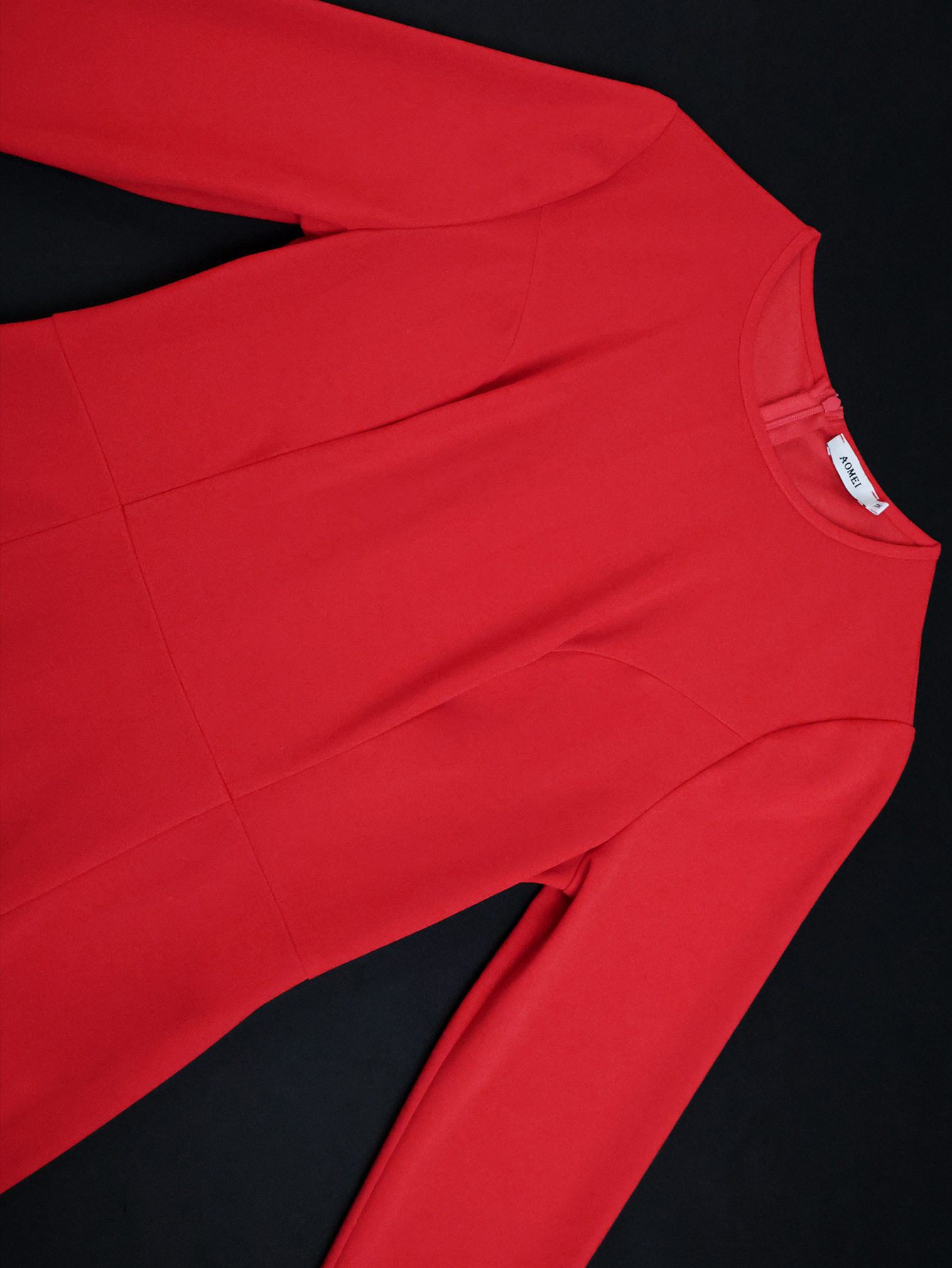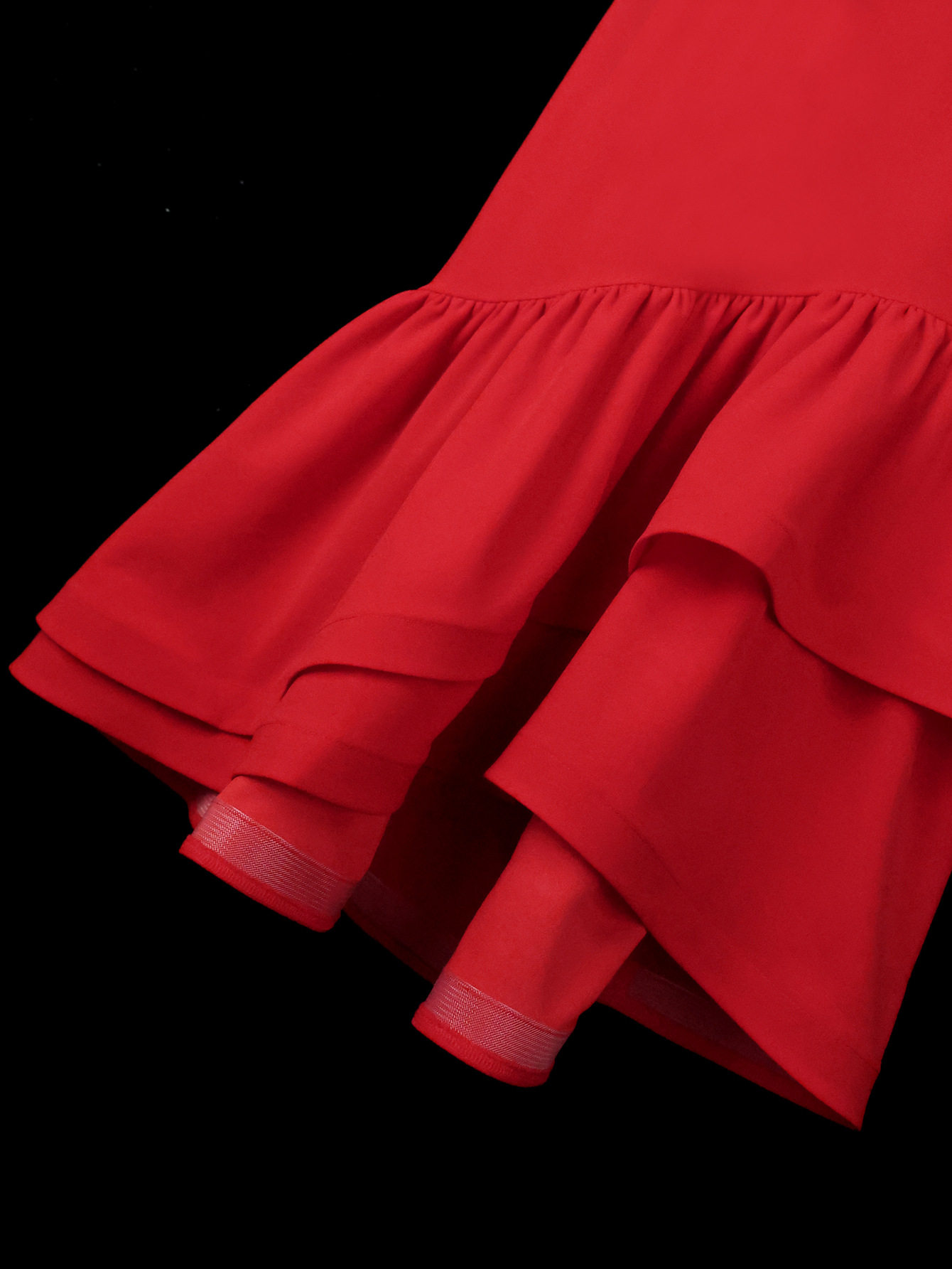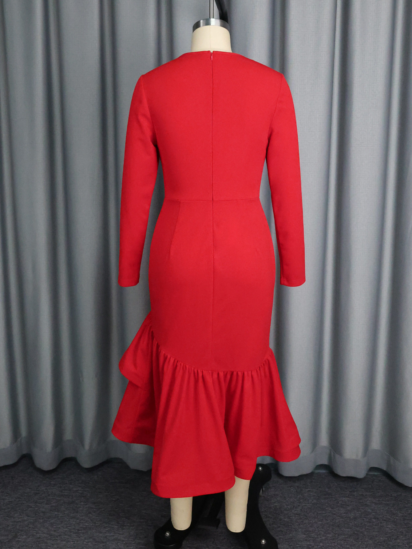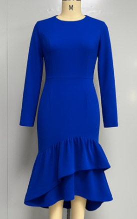 (FREE AIR SHIPPING) Round neck long sleeve dress, irregular ruffled waist fishtail skirt party dress