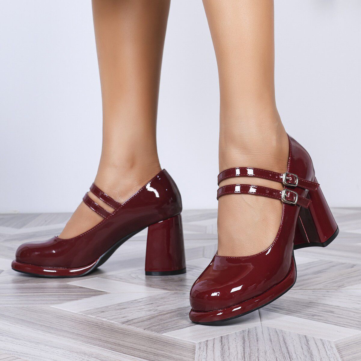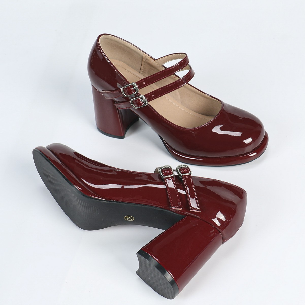 (FREE AIR SHIPPING) Ruby Black Retro Thick Heels Women's 2025 Summer Mary Jane Leather Shoes Small Fragrance Hepburn Style