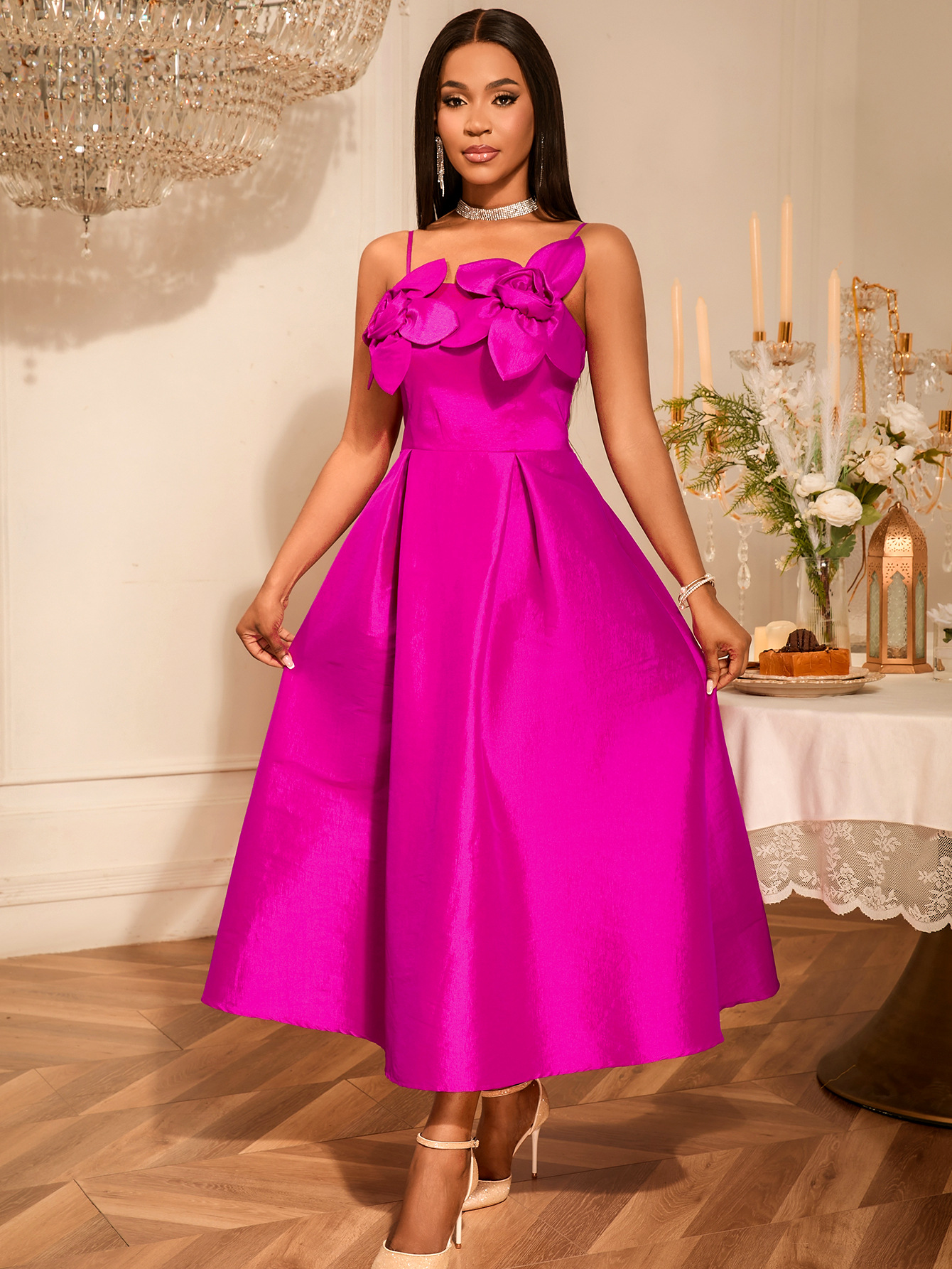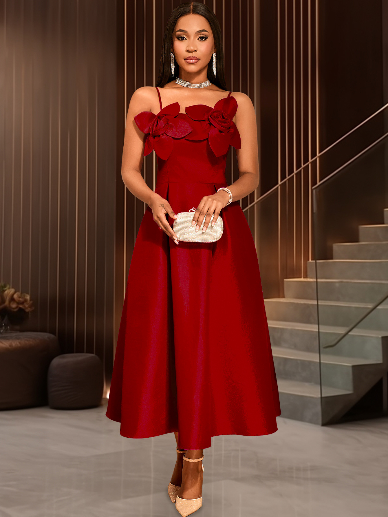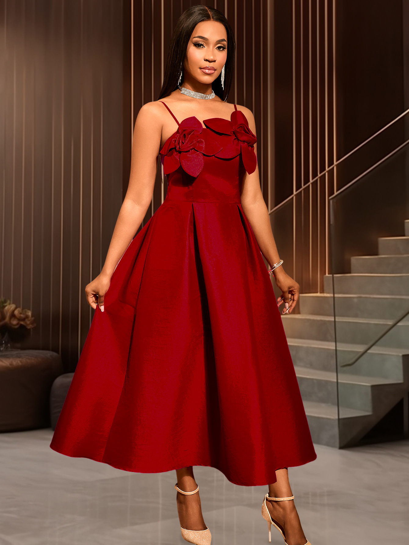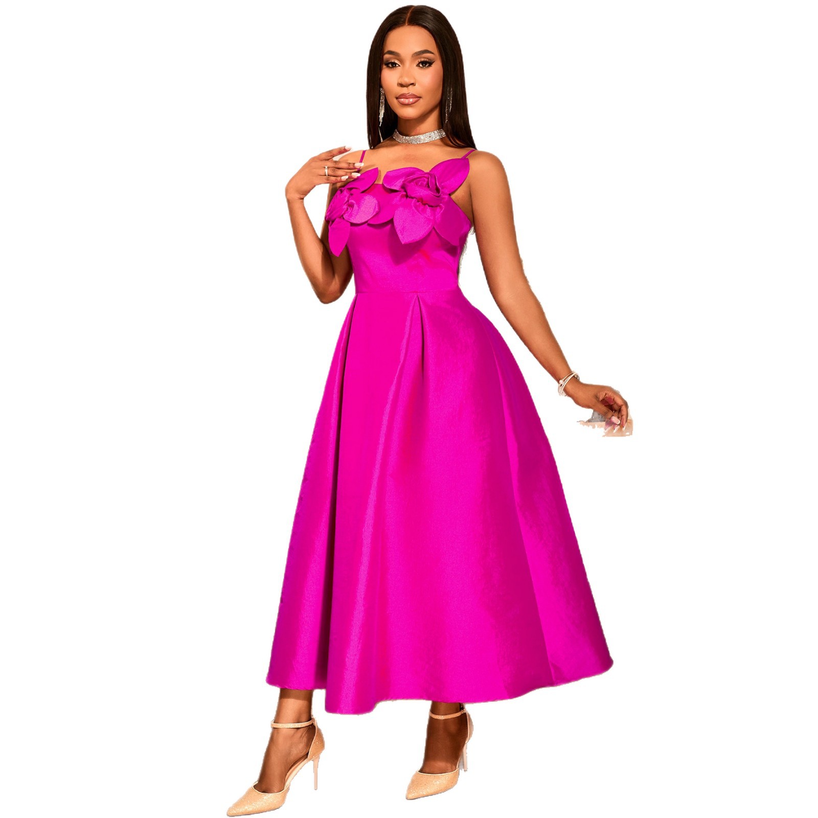 Sexy suspender three-dimensional flower dress, banquet high-waisted A-line large-swing tutu dress Dresses