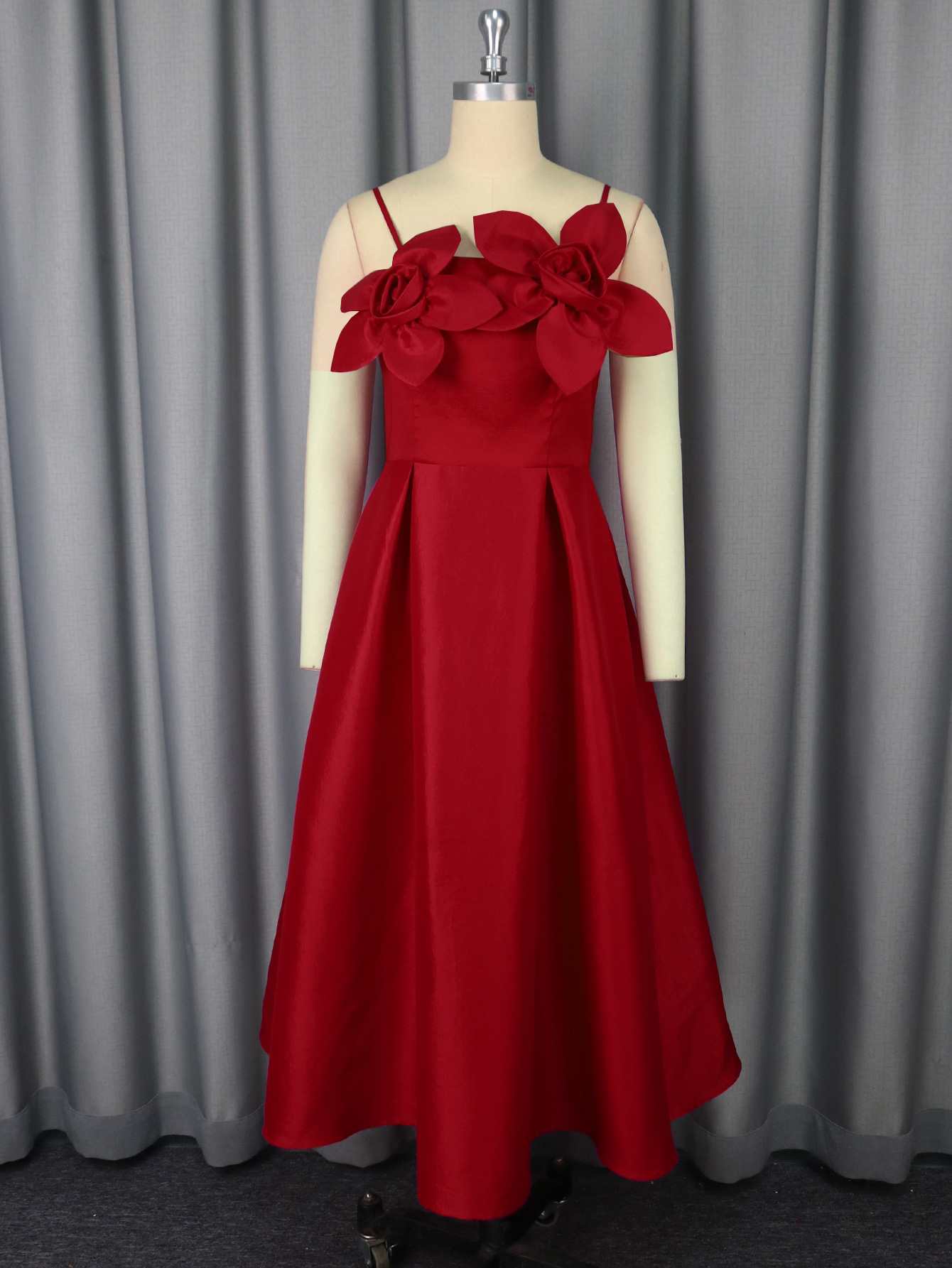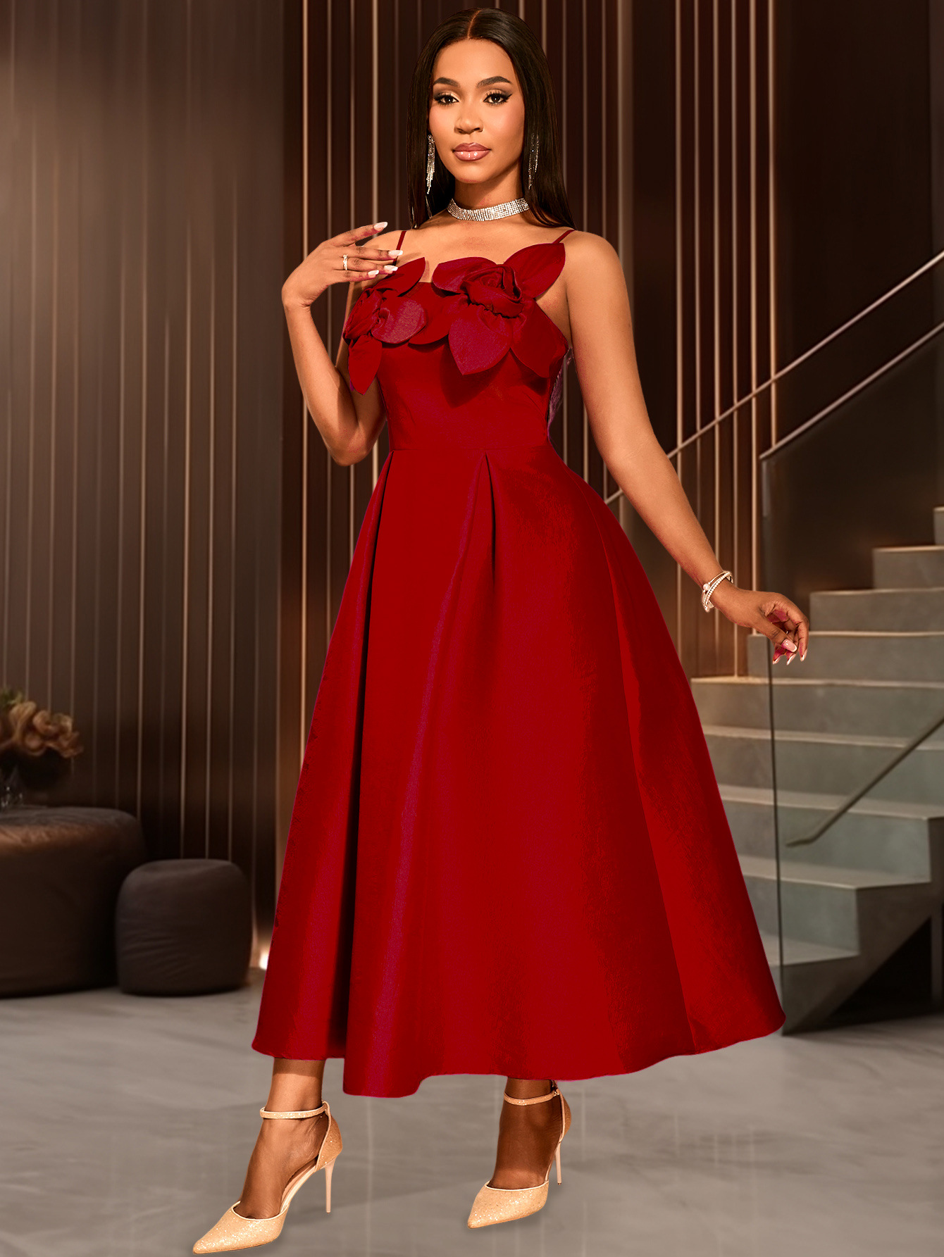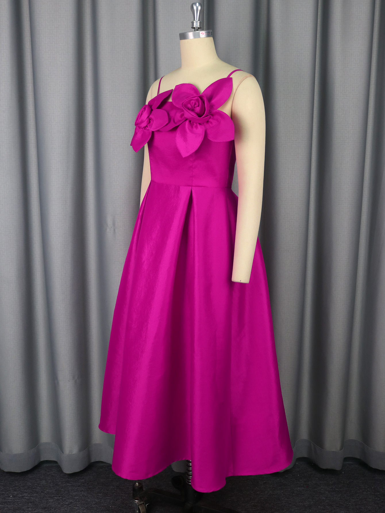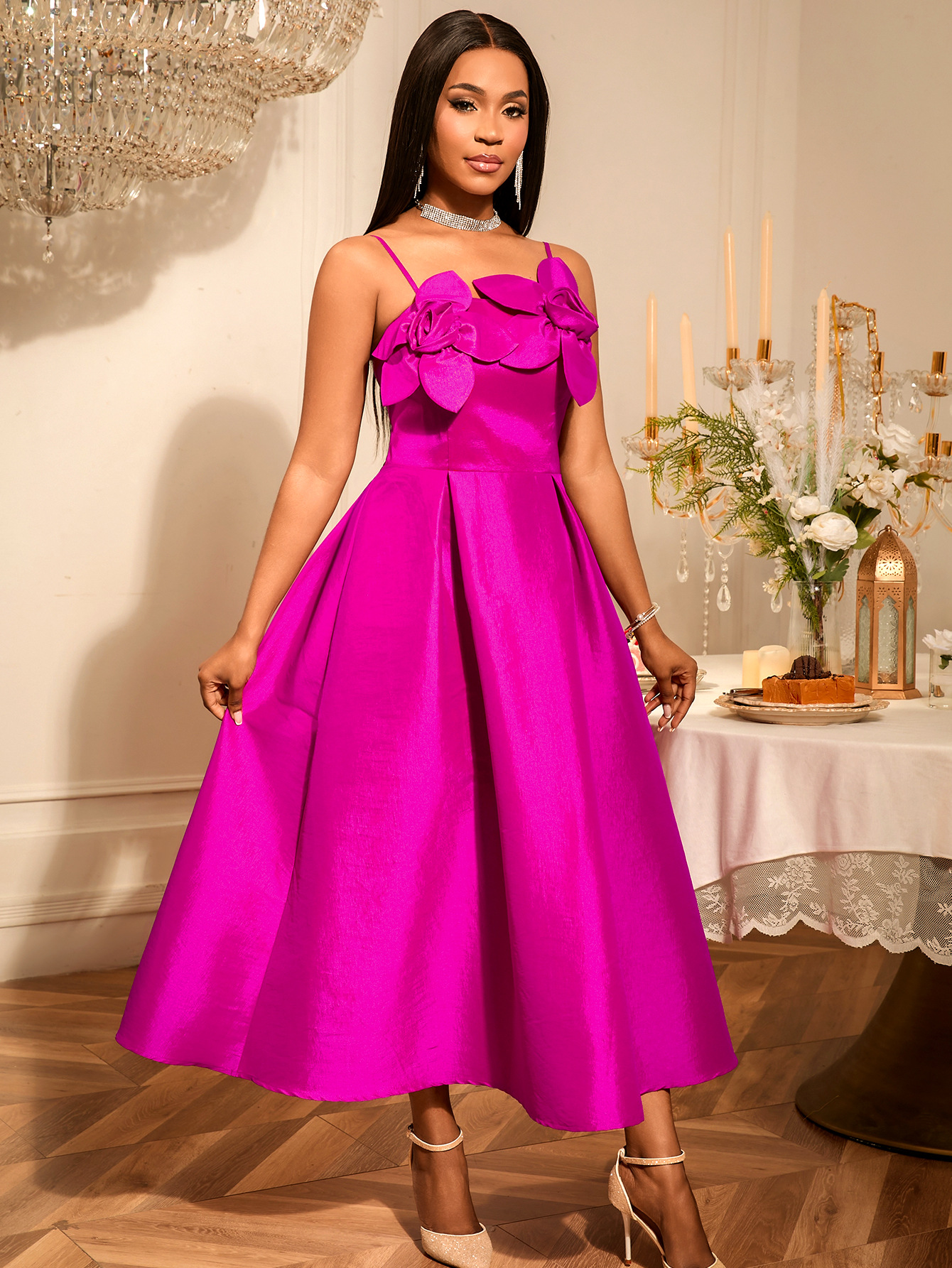 Sexy suspender three-dimensional flower dress, banquet high-waisted A-line large-swing tutu dress Dresses