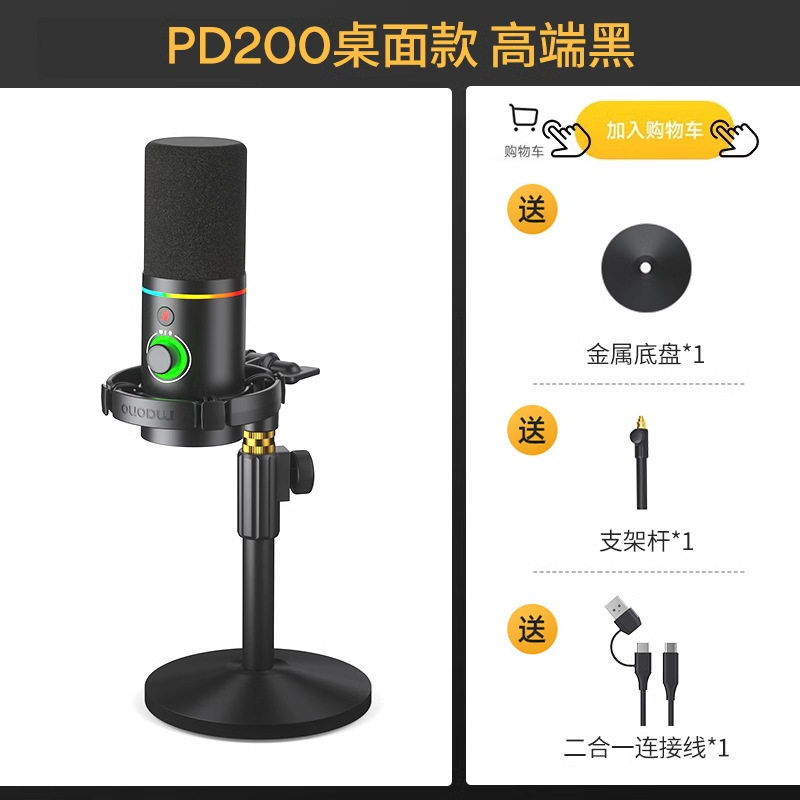 Shanke PD200X Dynamic Coil Microphone Desktop Bracket Ke Feng Cantilever Bracket Computer Noise Reduction Flash Received Microphone