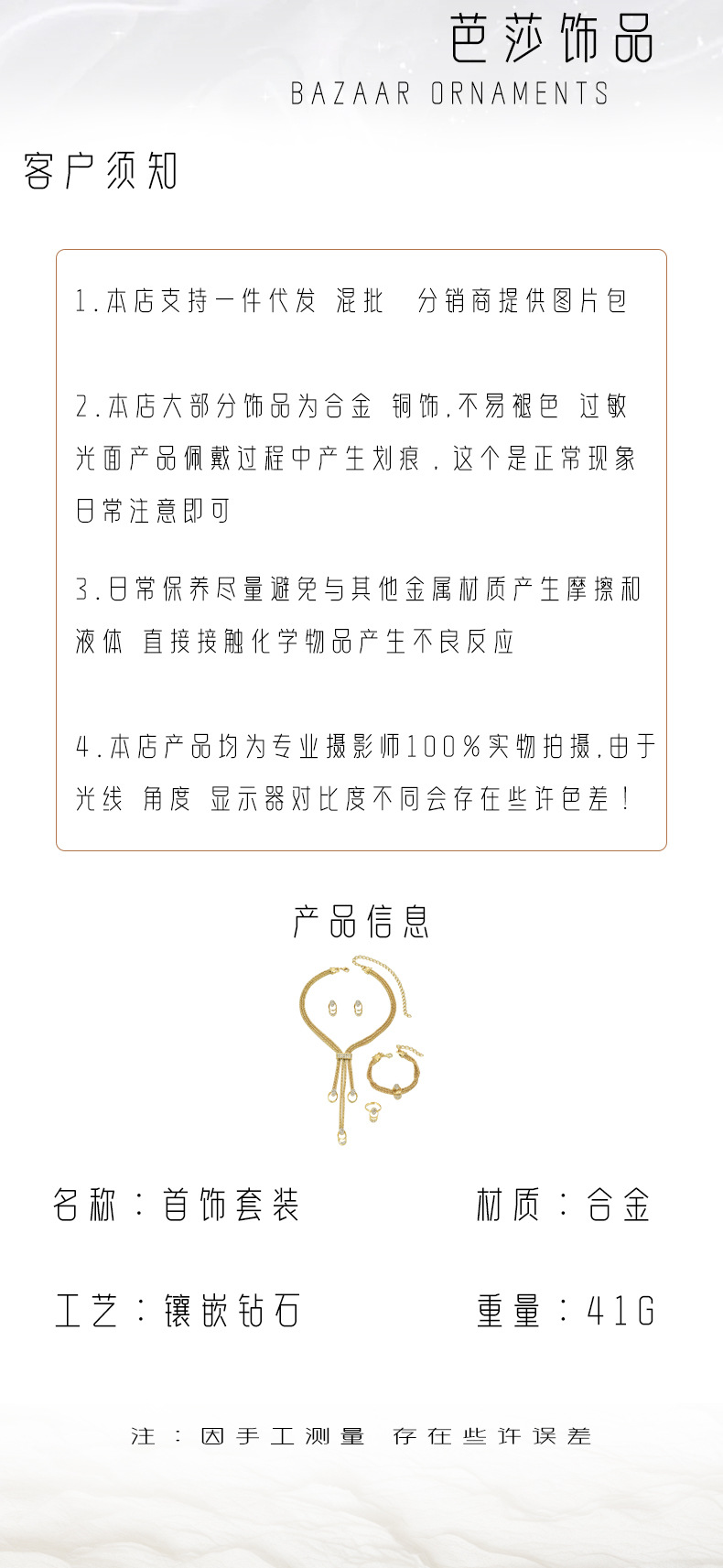 (FREE AIR SHIPPING) simple and fresh necklace and earrings set inlaid with diamond niche design clavicle chain versatile index finger ring