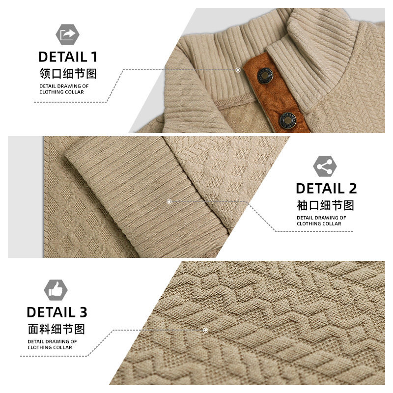 Spring and Autumn Men's European Size Men's Stand Collar Long Sleeve Casual Outdoor Sweater Jacquard Sweater