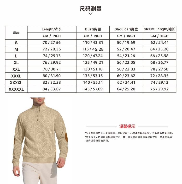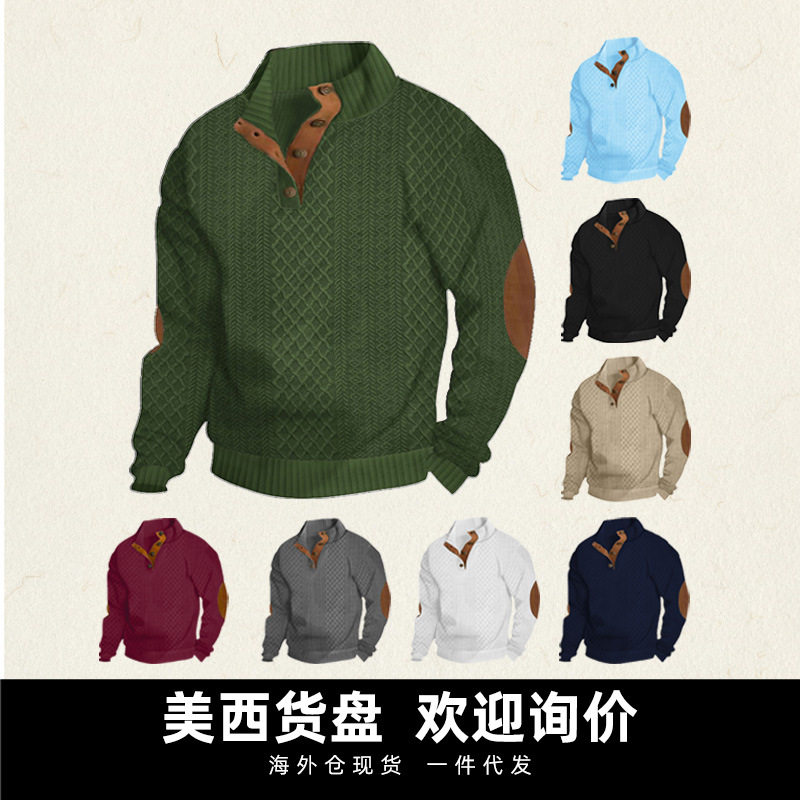 (FREE AIR SHIPPING) Spring and Autumn Men's European Size Men's Stand Collar Long Sleeve Casual Outdoor Sweater Jacquard Sweater