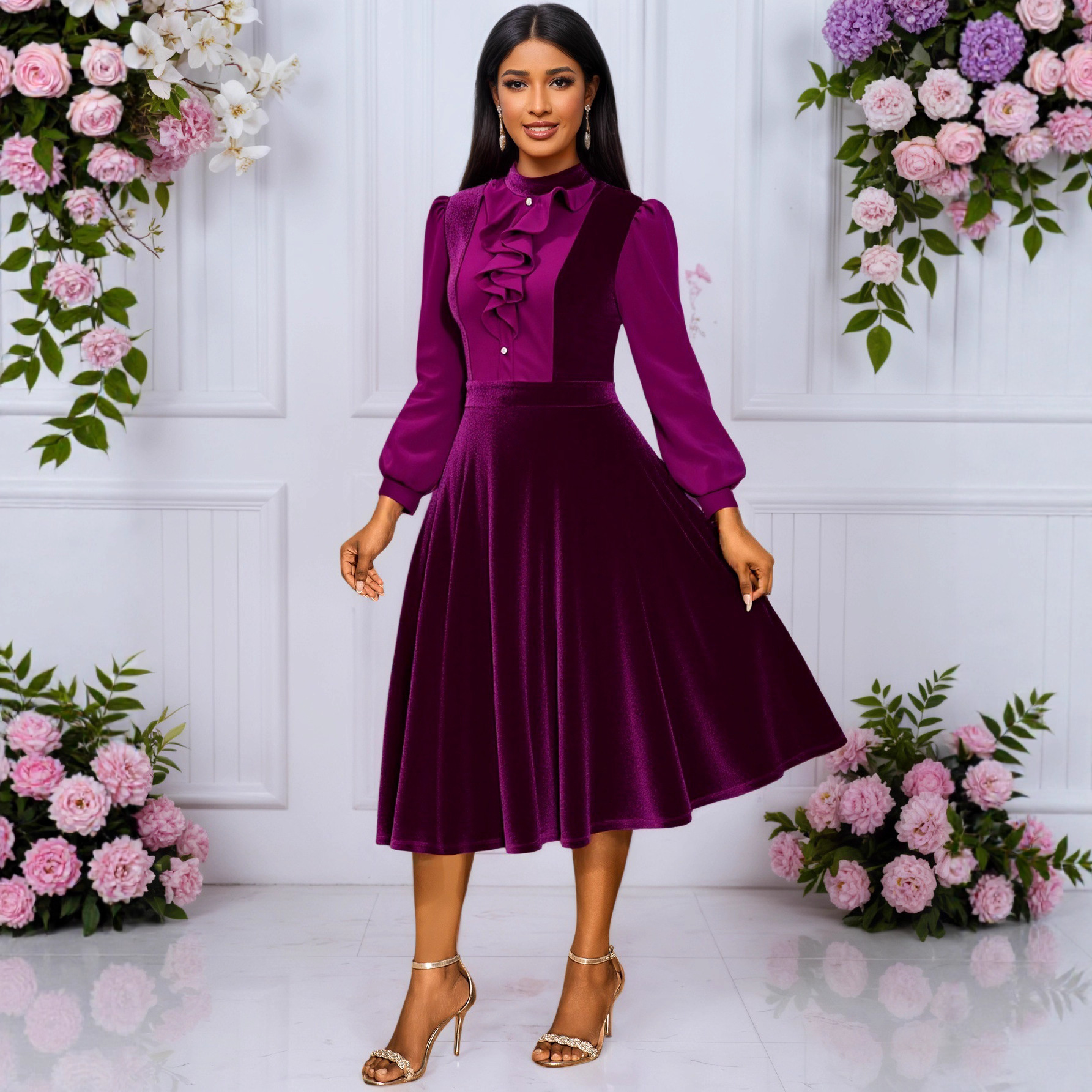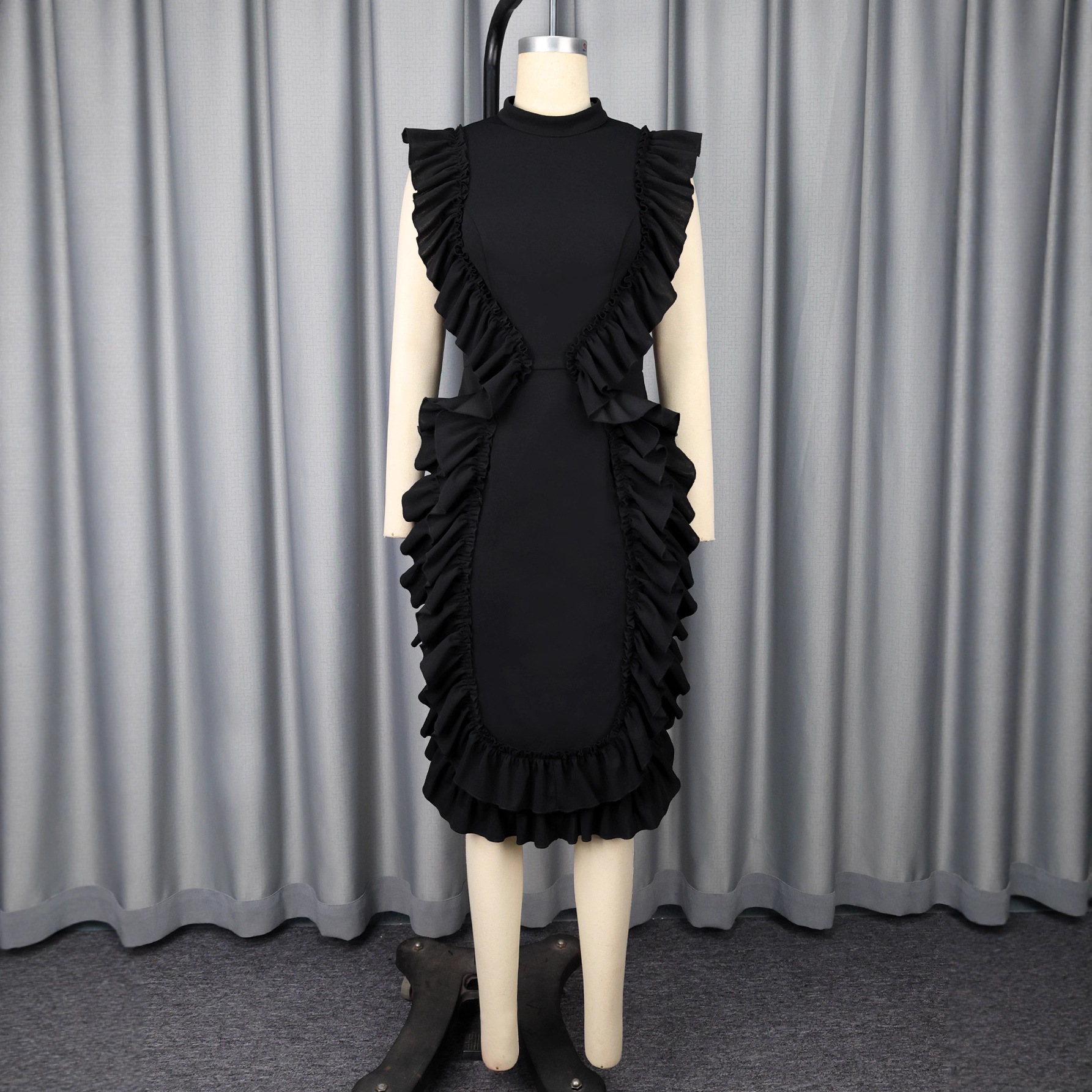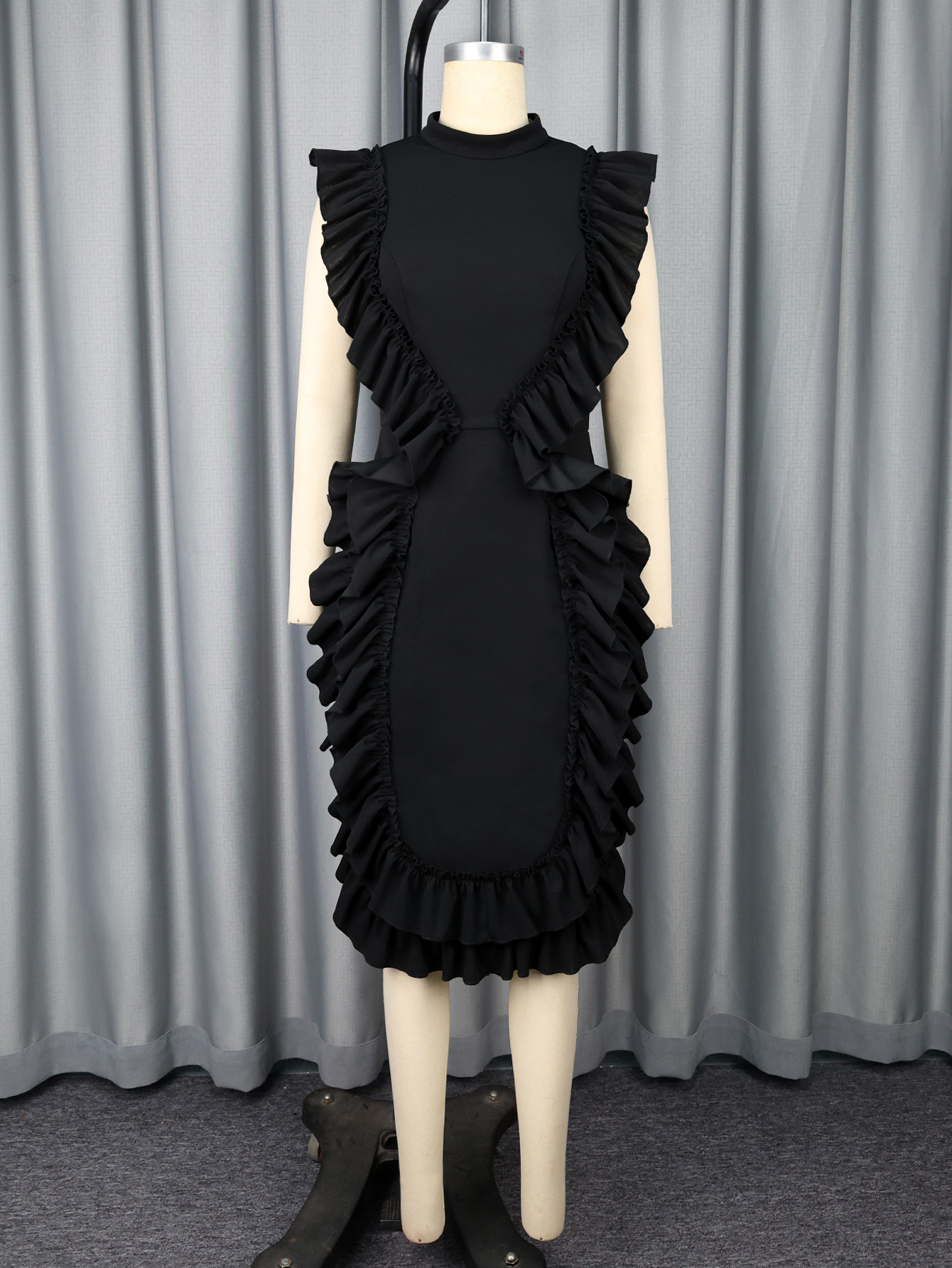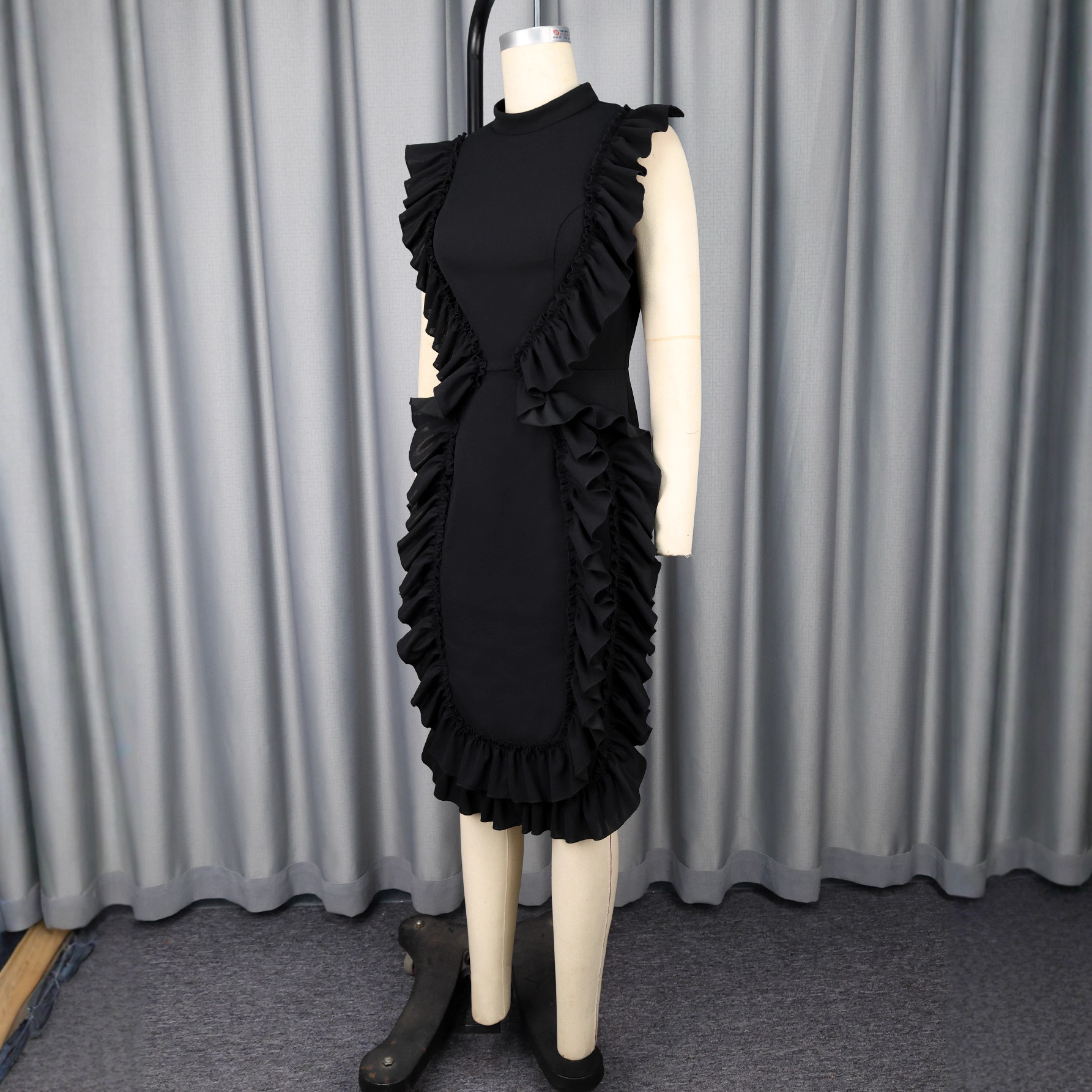 Style stand collar fungus small pleated party dress fashionable women's sleeveless slim banquet dress dress