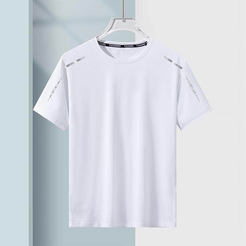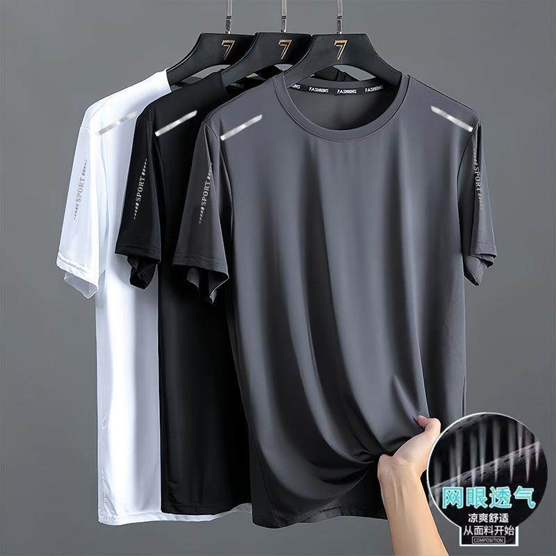 Summer Quick-drying T-shirt Men's Half-sleeve Loose Ice-cool Breathable Fitness Running plus size Elastic Quick-drying Clothes Sports Short-sleeve