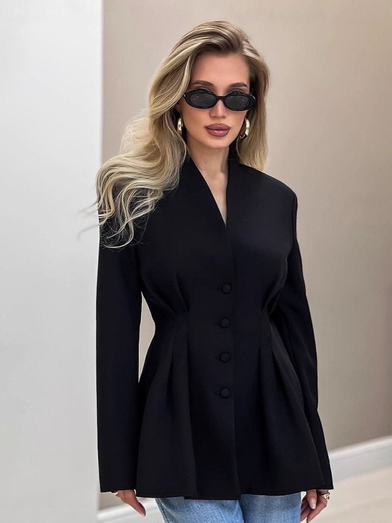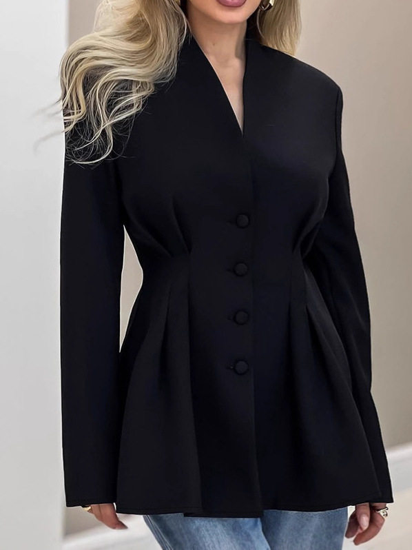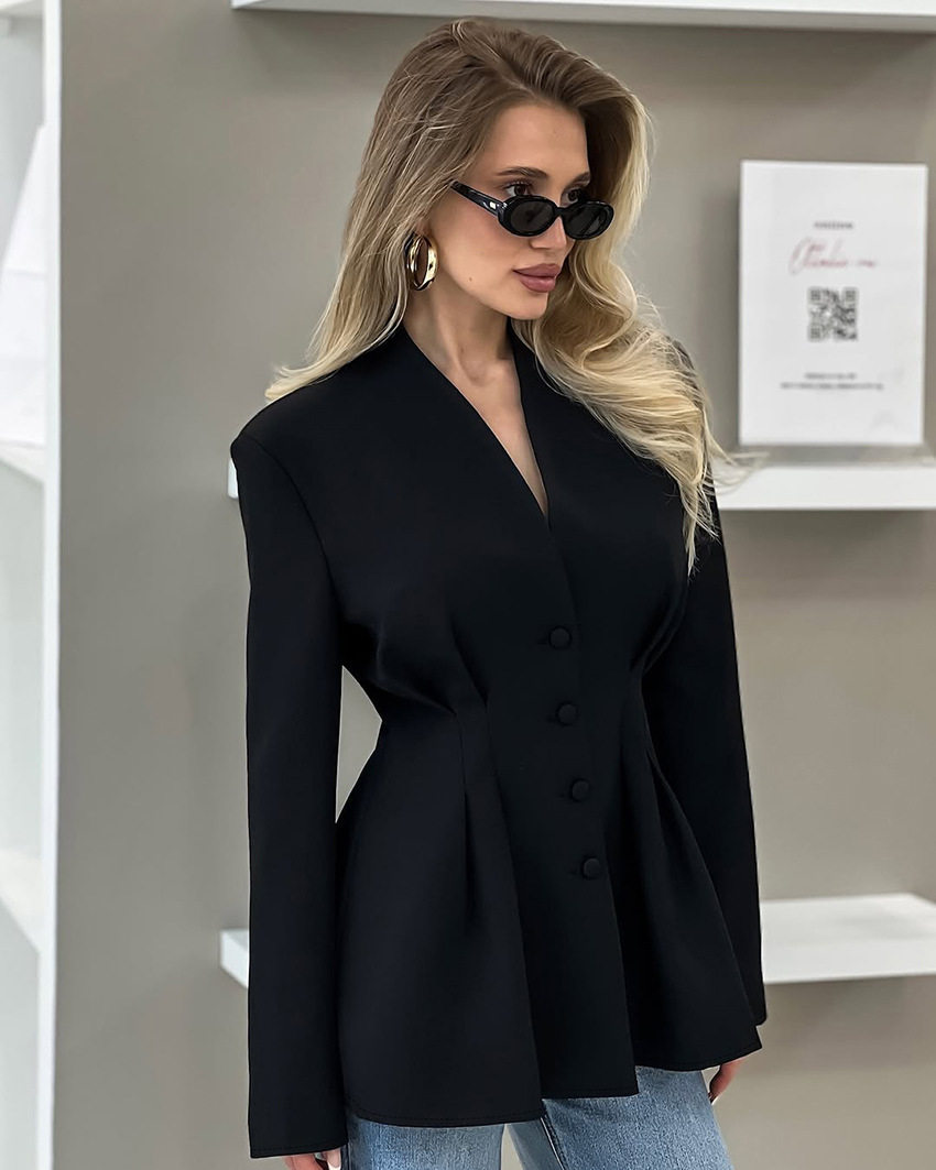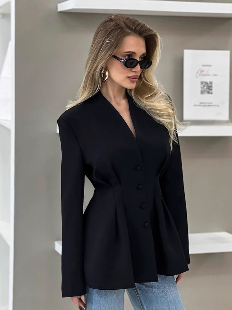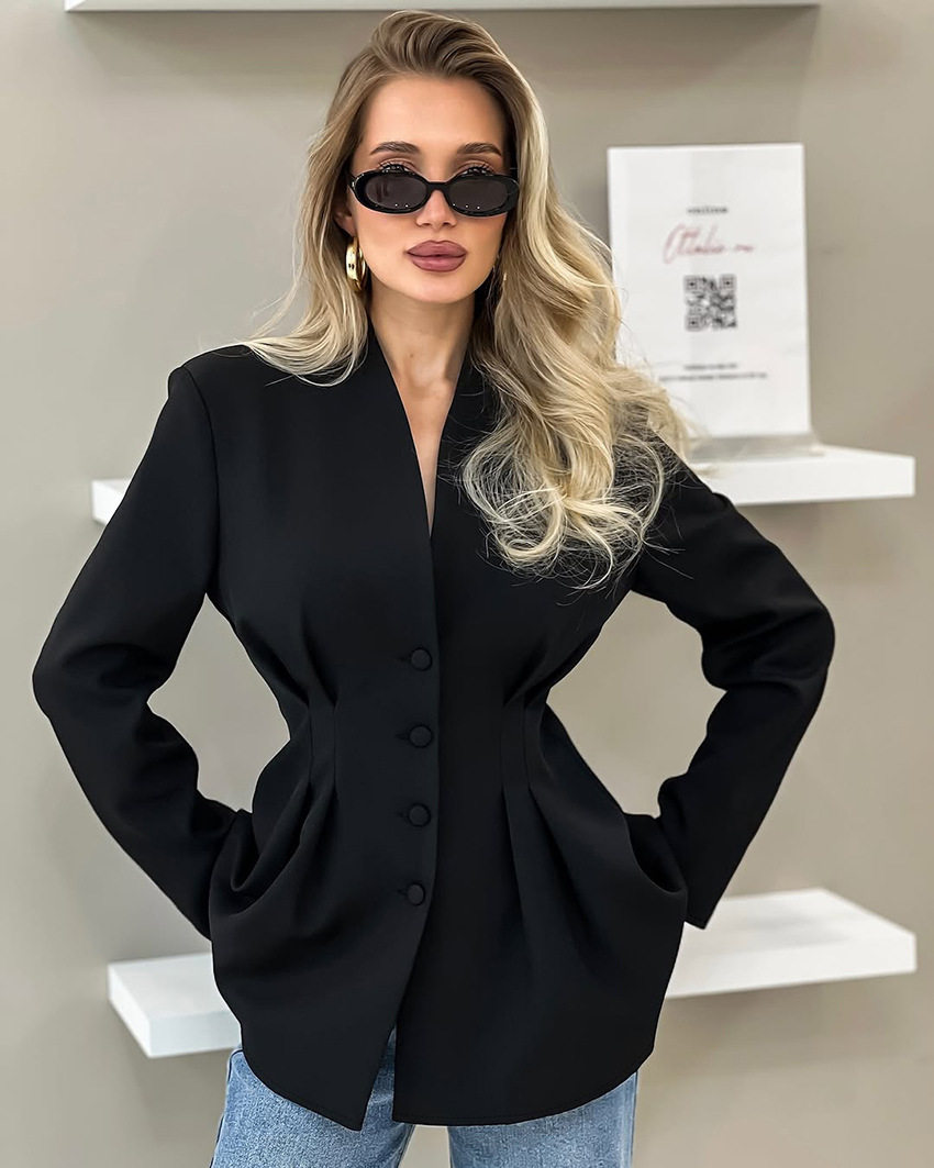 Temperament, elegant, slim waist, V-neck design, commuter suit jacket for women
