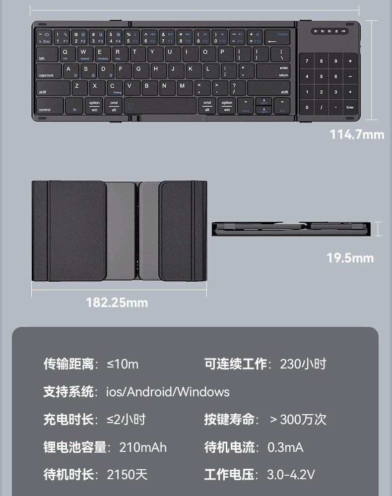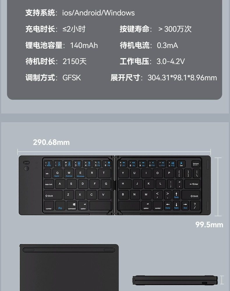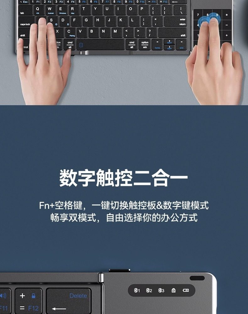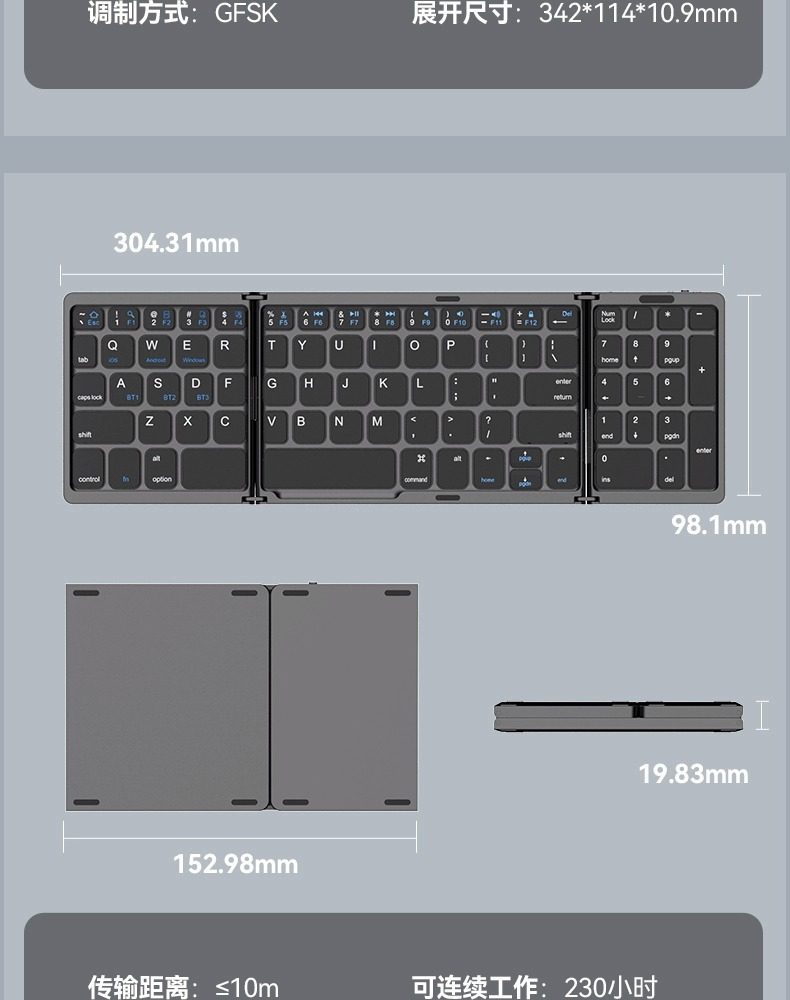(FREE AIR SHIPPING) three folding keyboard wireless bluetooth foldable keypad for desktop computer millet notebook suit