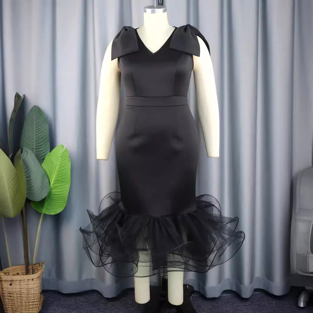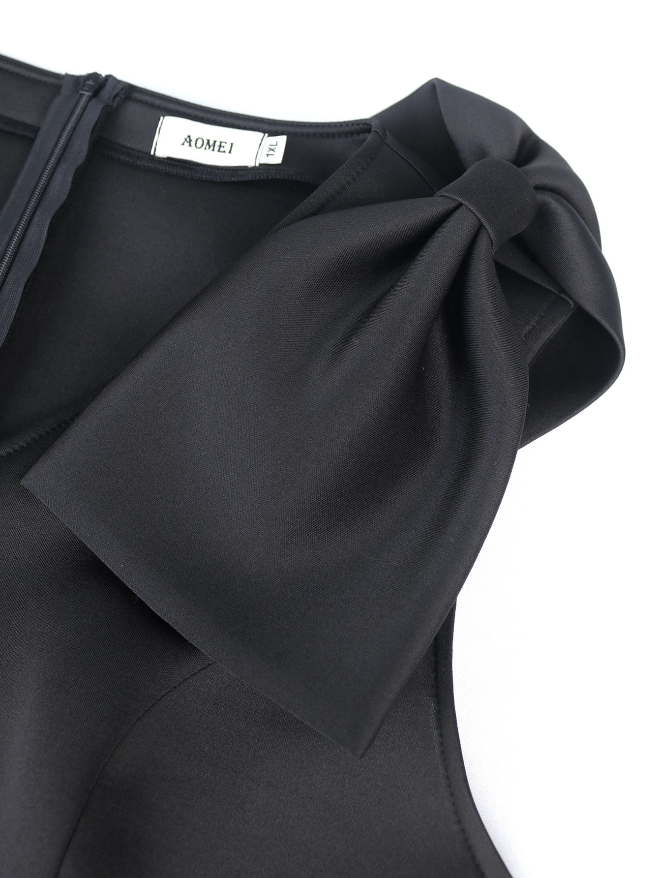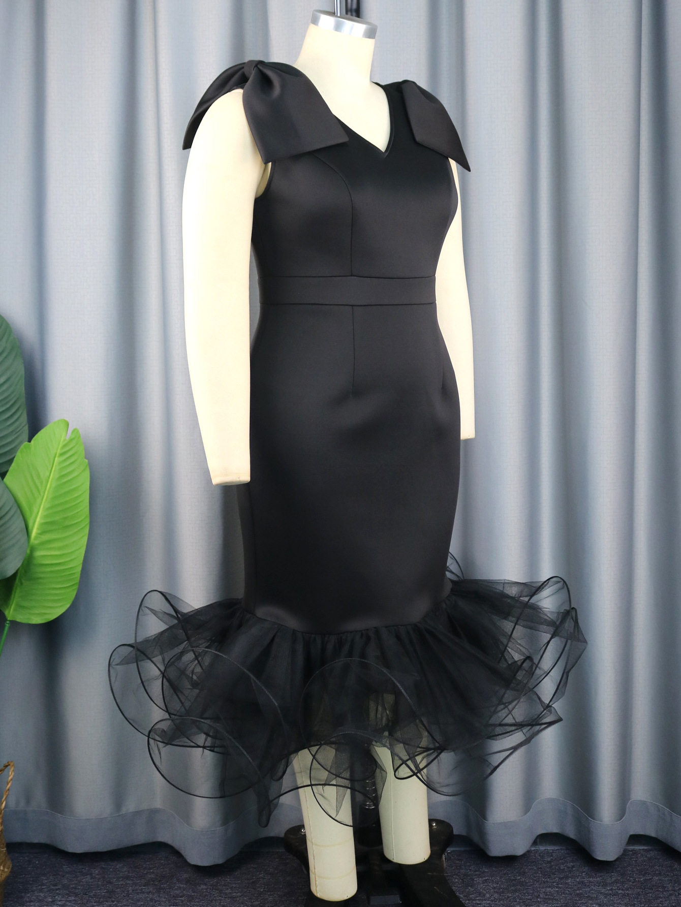 V-neck Sleeveless Bow Dress Designer Mesh Dress Dresses
