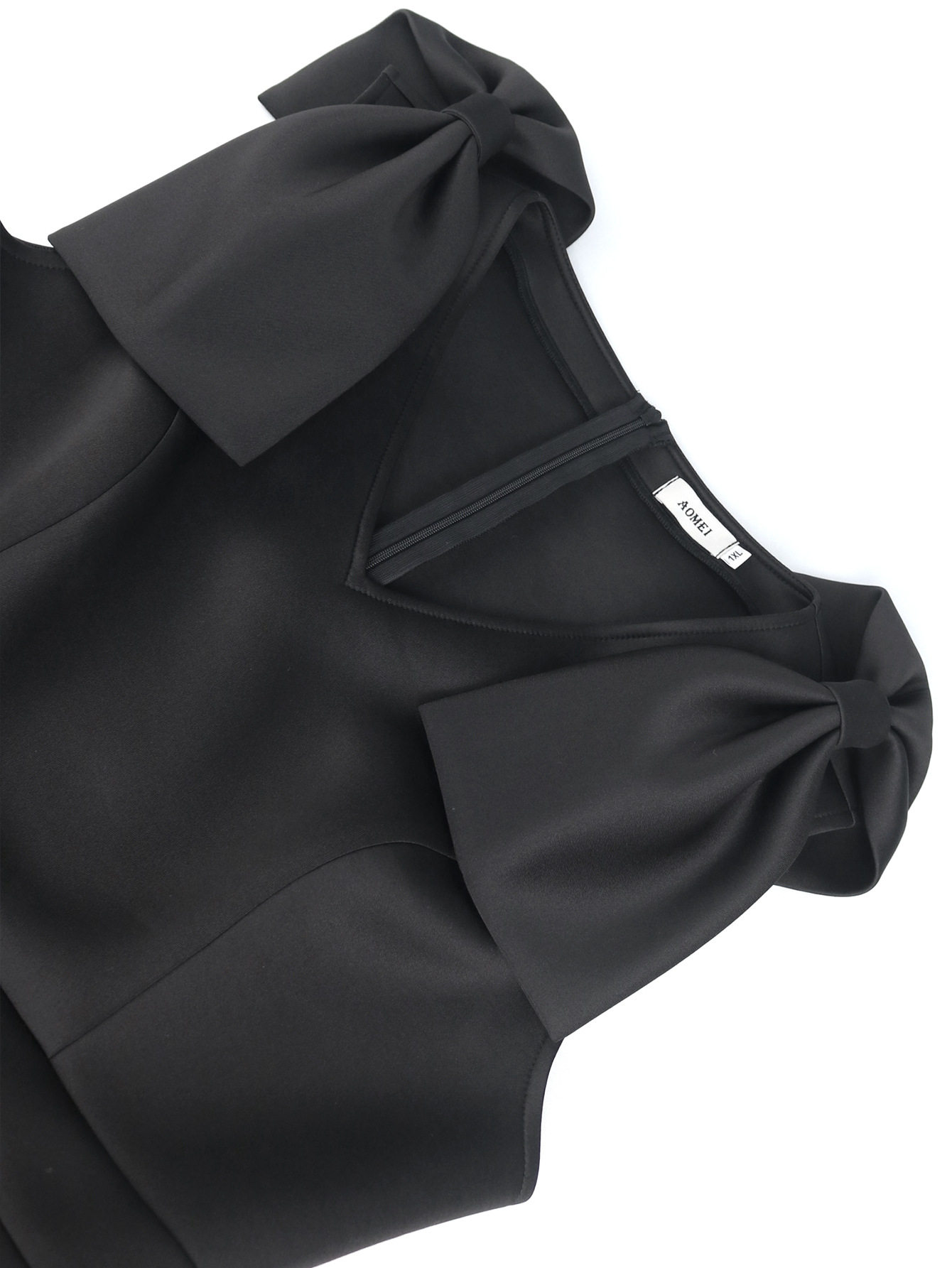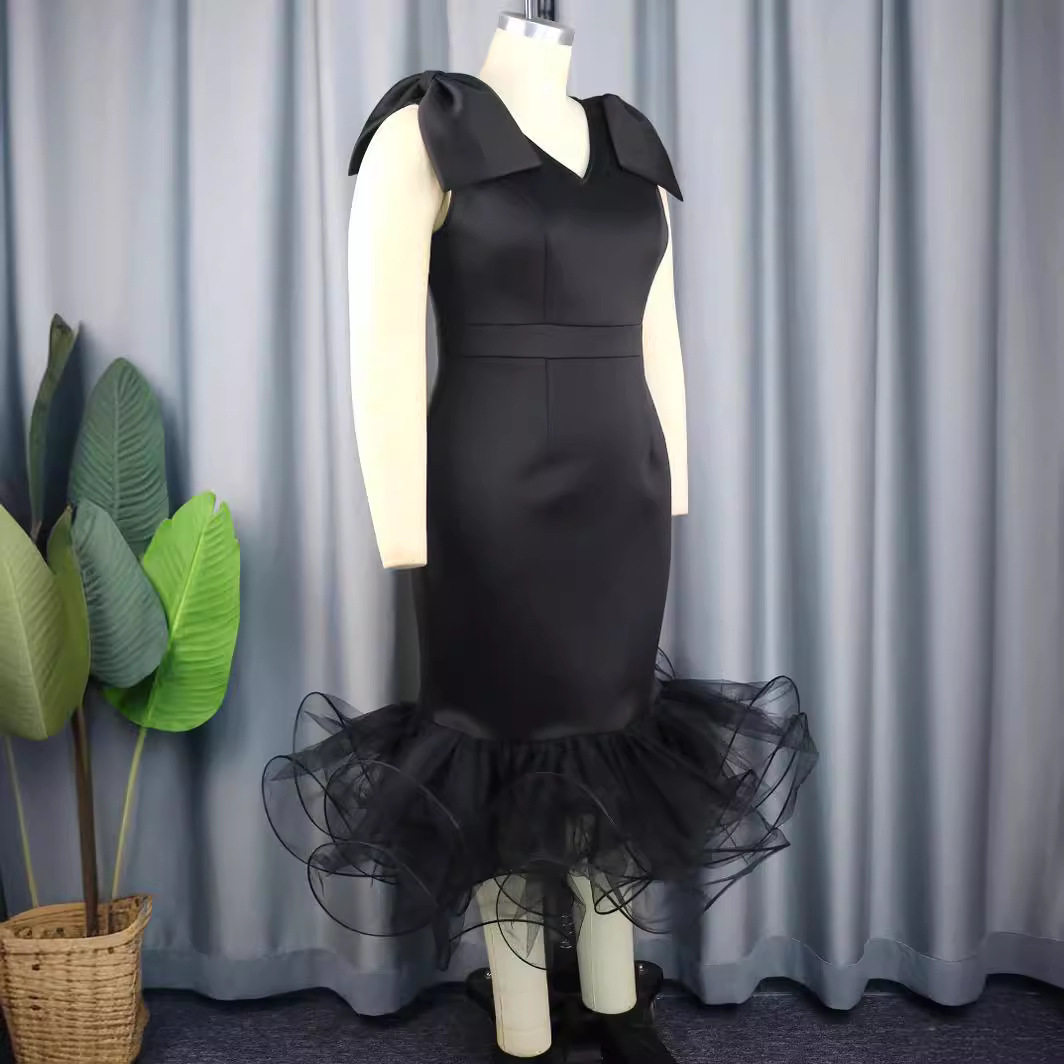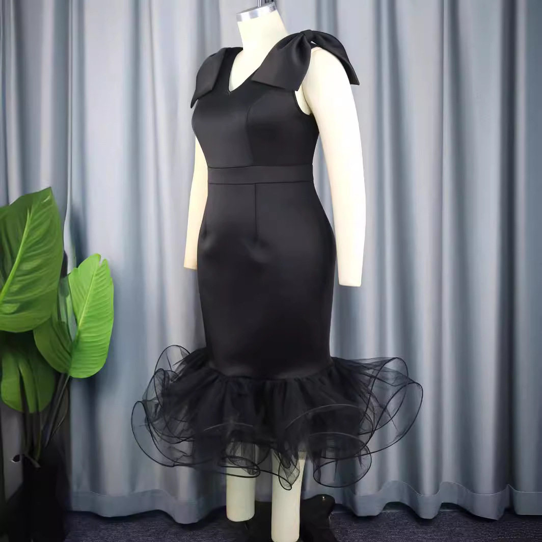 V-neck Sleeveless Bow Dress Designer Mesh Dress Dresses