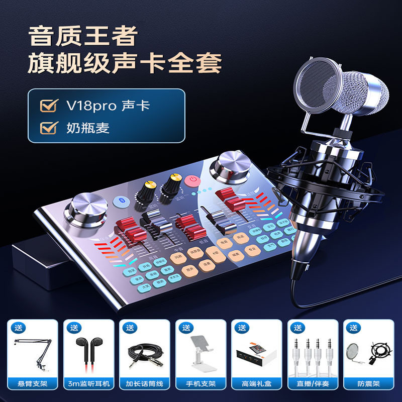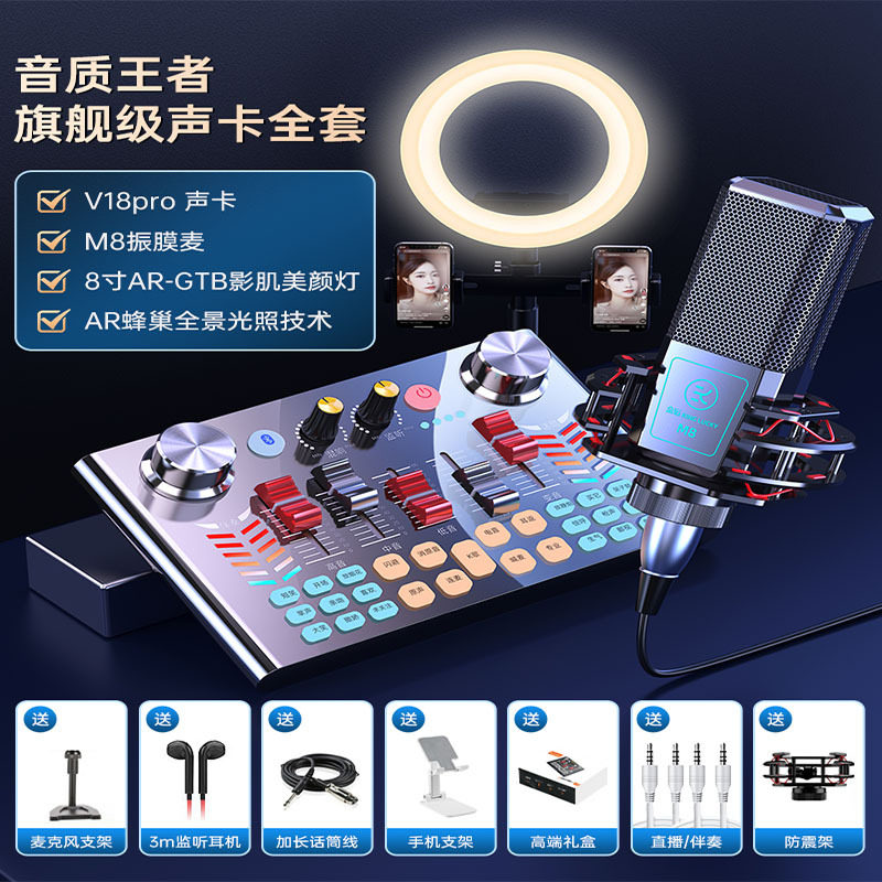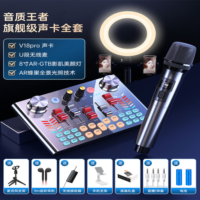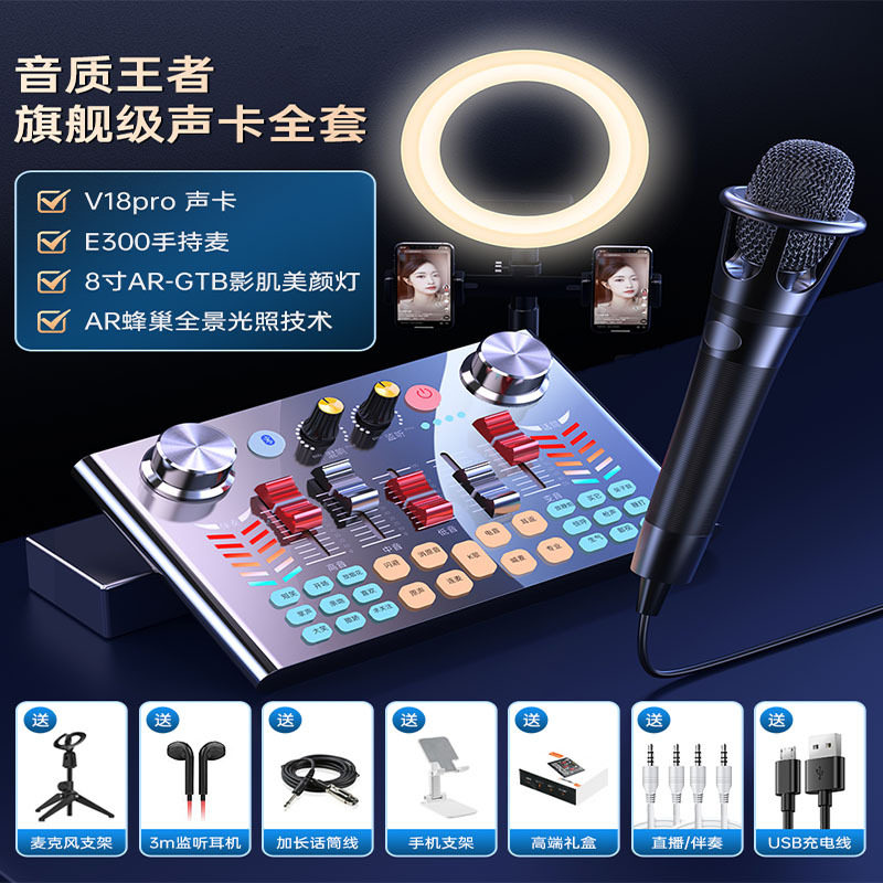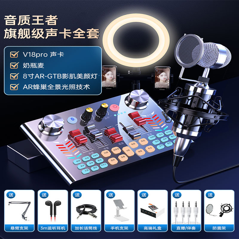 V18 live broadcast sound card fill light suit equipment noise reduction transformer microphone microphone computer mobile phone karaoke artifact