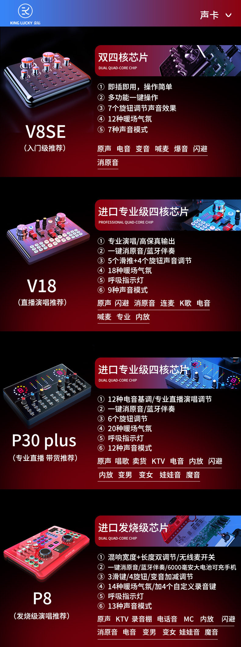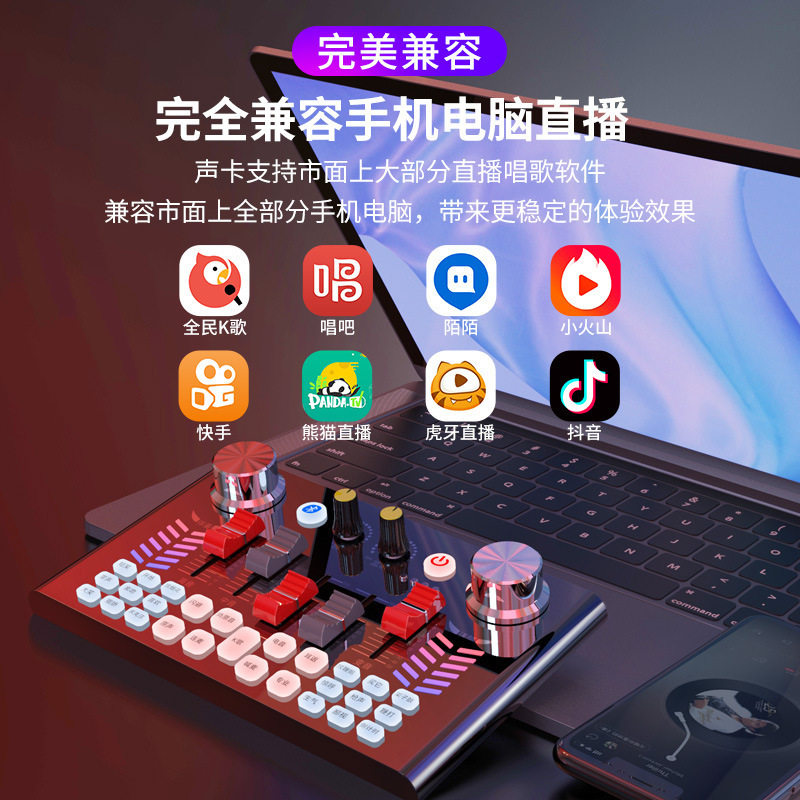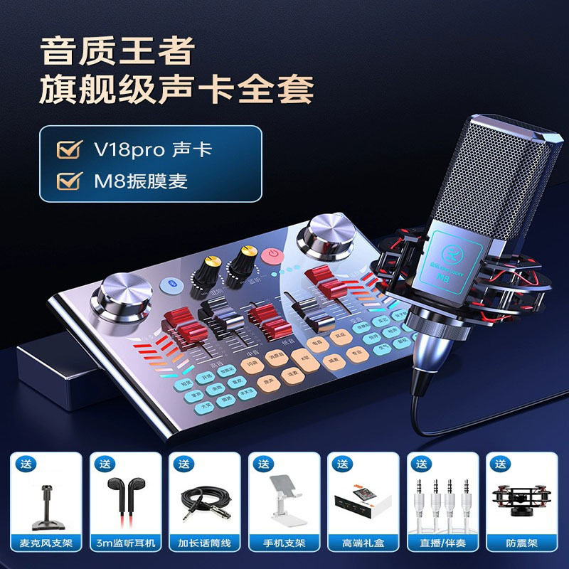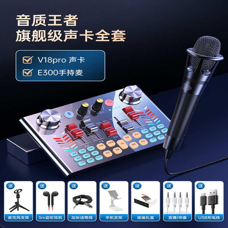 V18 live broadcast sound card fill light suit equipment noise reduction transformer microphone microphone computer mobile phone karaoke artifact