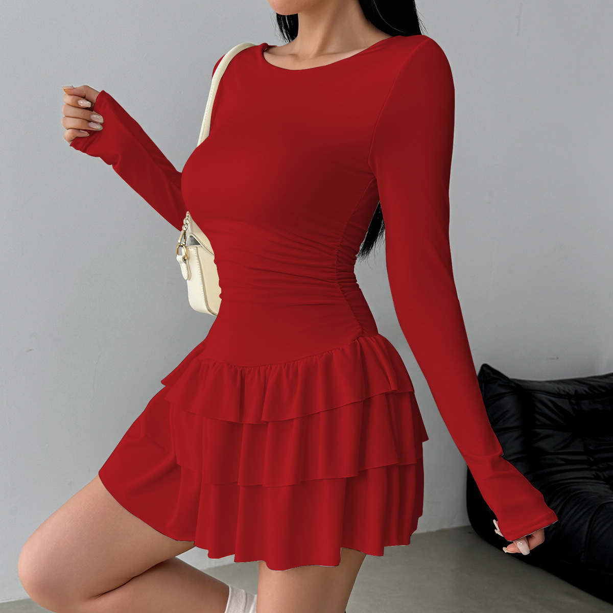 Women's autumn and winter solid color slim slim temperament long-sleeved dress for women with high-end feel