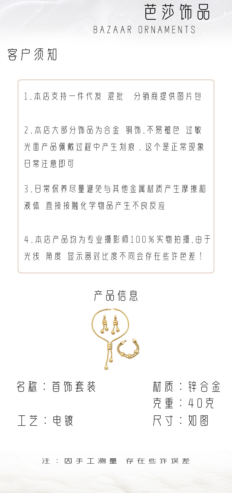 (FREE AIR SHIPPING) women's jewelry set 18k electroplated long necklace geometric tassel earrings versatile bracelet for women