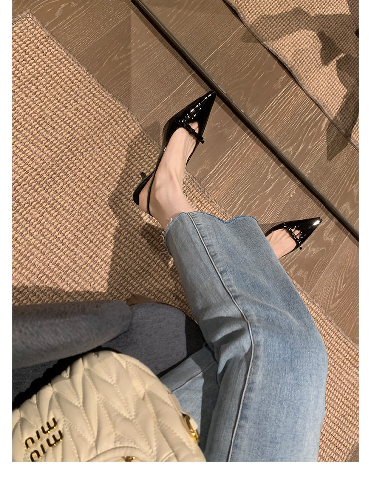 Women's Pointed Toe Hollow High Heels Stiletto Heels Patent Leather Bow Shoes