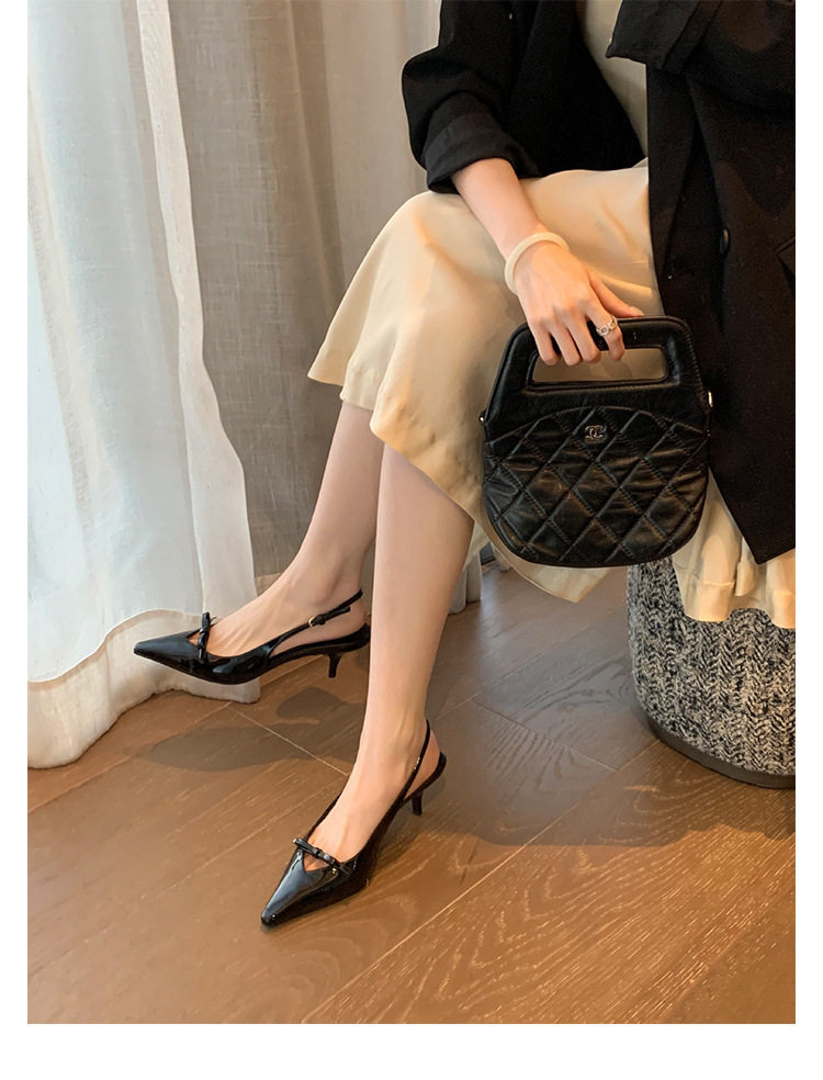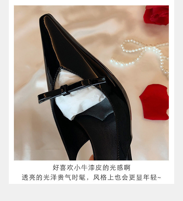 (FREE AIR SHIPPING) Women's Pointed Toe Hollow High Heels Stiletto Heels Patent Leather Bow Shoes