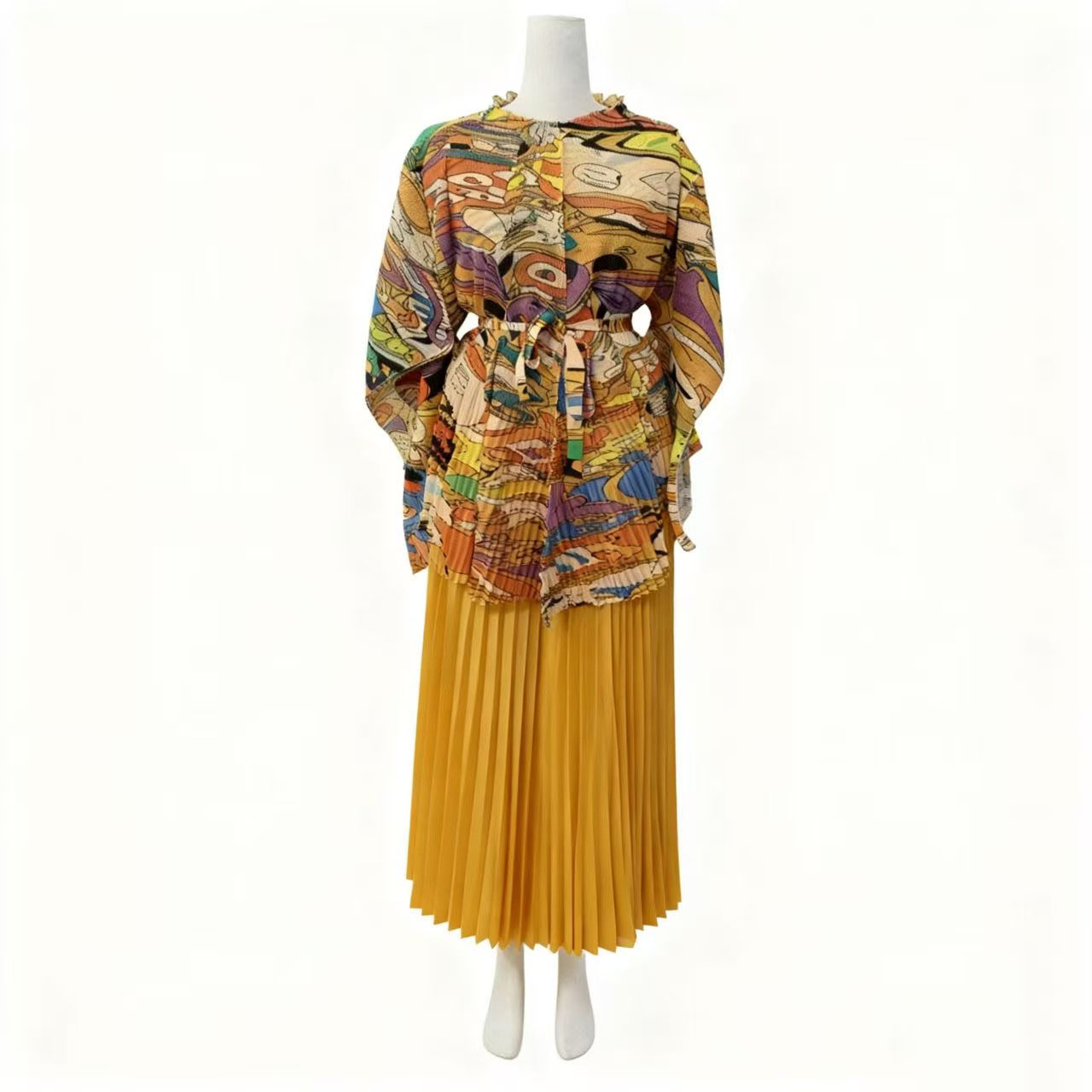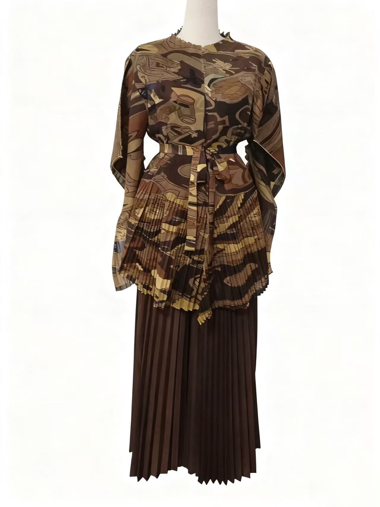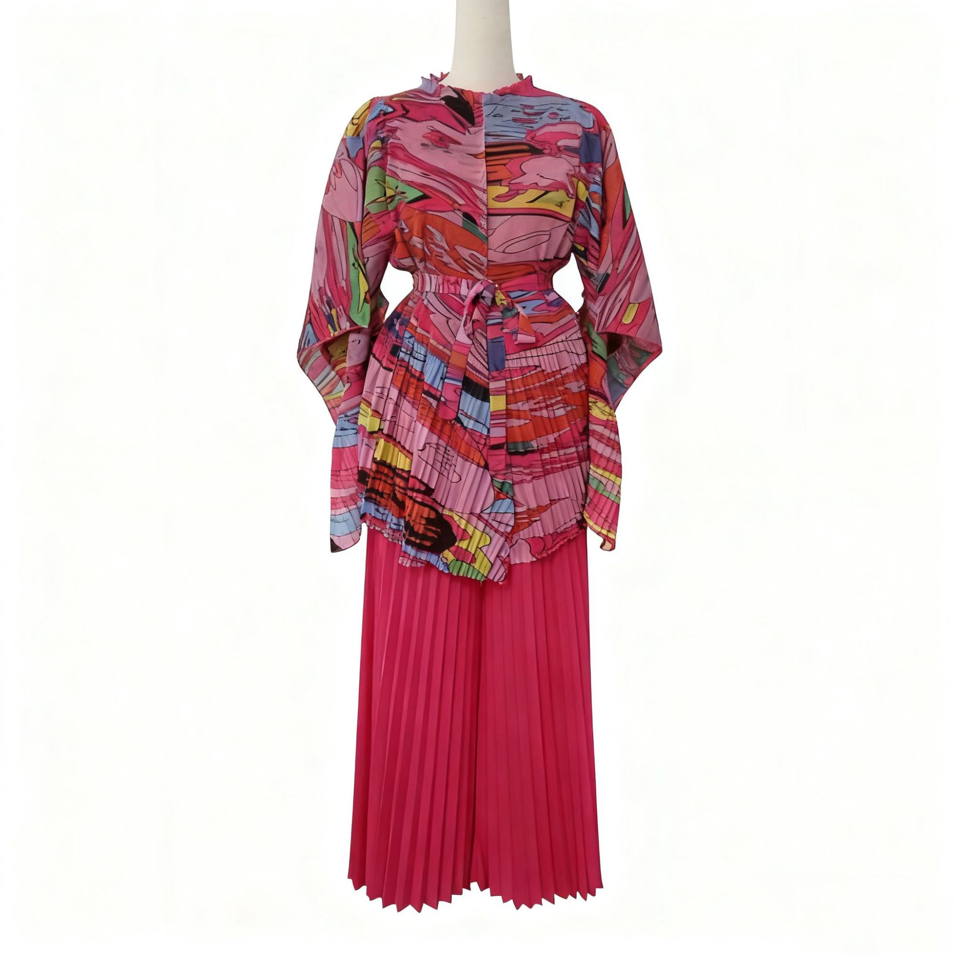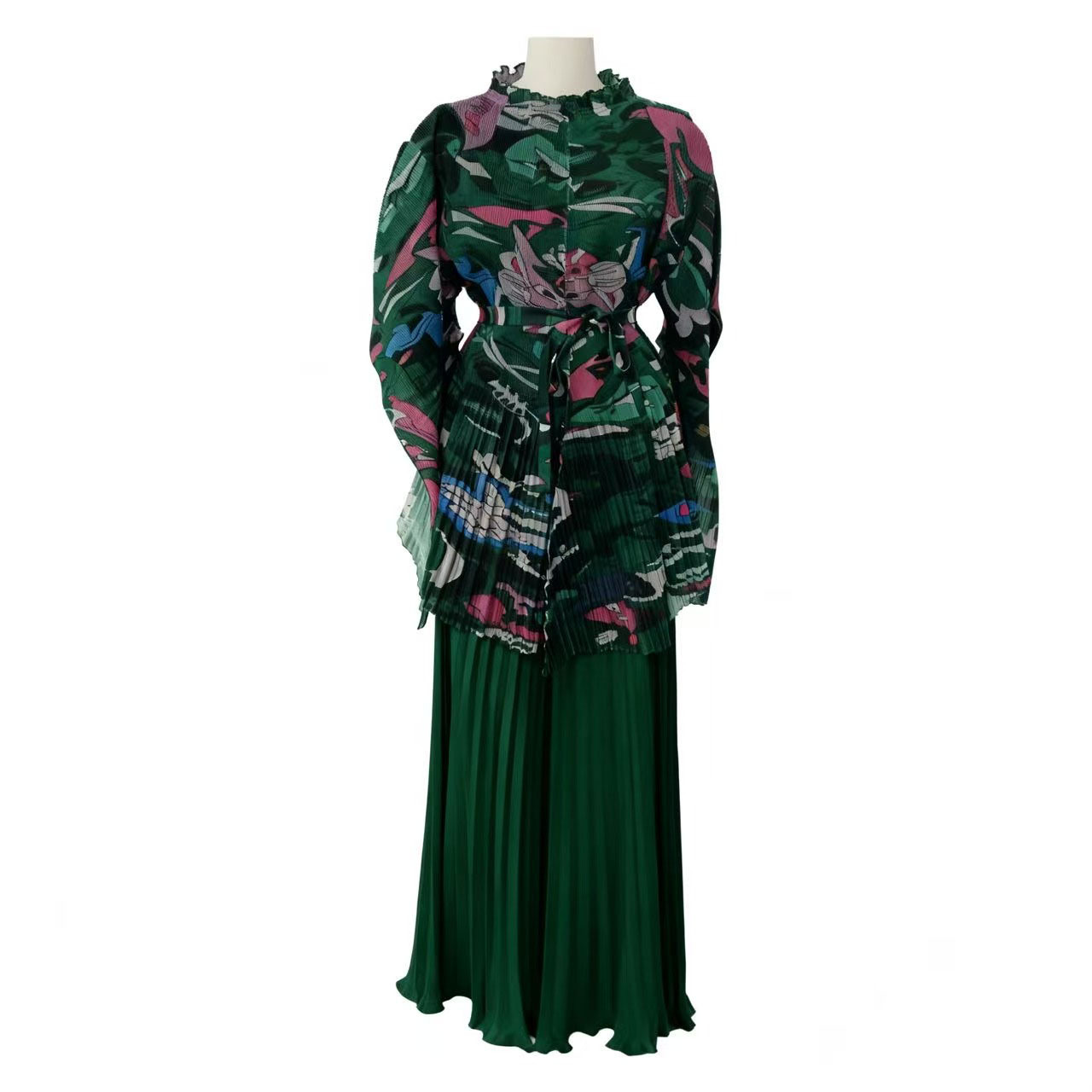 (FREE AIR SHIPPING) women's suit pants high-end African European and American pleated dress printed two-piece set