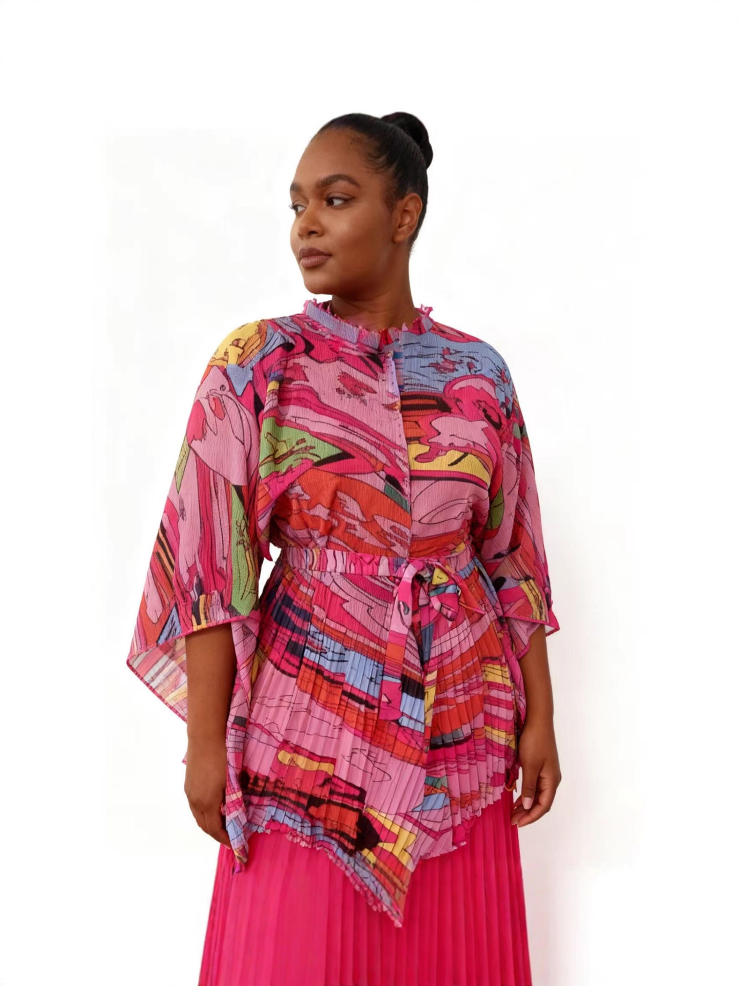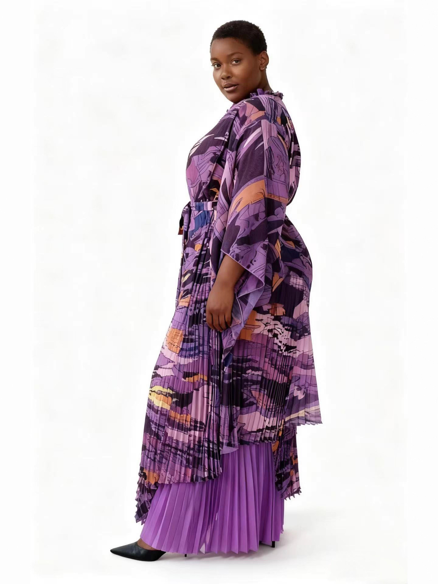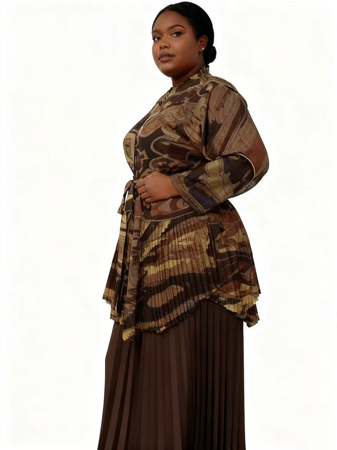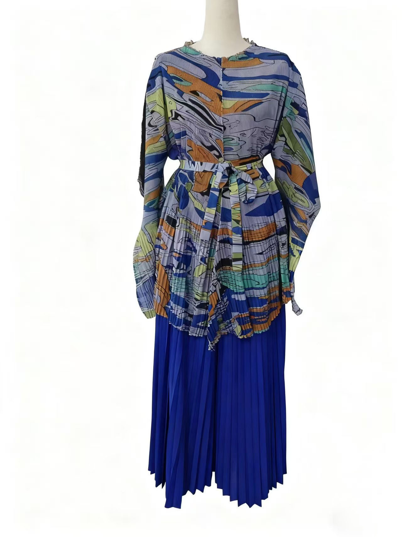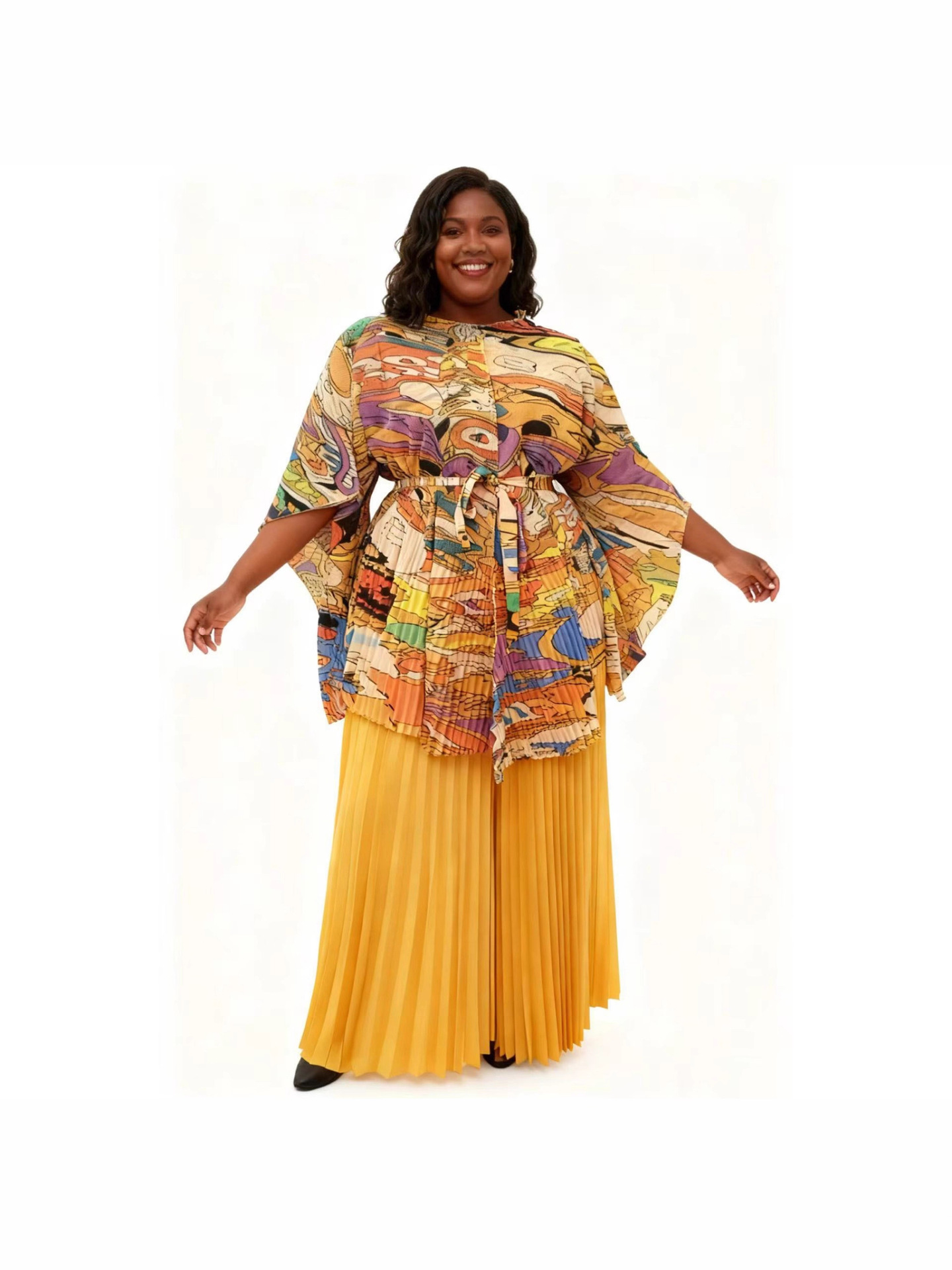 (FREE AIR SHIPPING) women's suit pants high-end African European and American pleated dress printed two-piece set